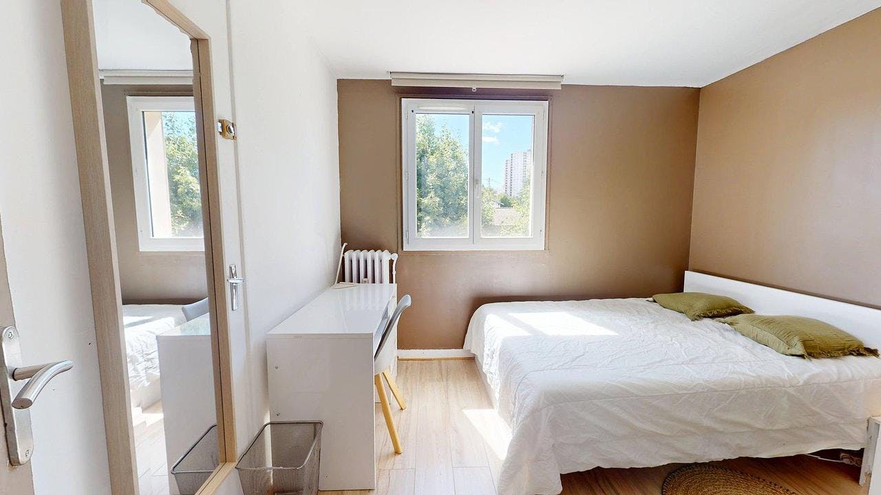Notre agence vous présente cette colocation meublée de 64 m2 située au 4ème étage de la Résidence Dombasle à Saint-Étienne. Le logement, traversant et lumineux, offre une belle vue dégagée sur les hauteurs de la ville. 🛋️ LES ESPACES COMMUNS Le salon est spacieux et confortable. Il est aménagé avec un grand canapé bleu, une table basse blanche, un fauteuil et une table à manger. Les murs sont clairs, avec quelques cadres décoratifs, et le sol en parquet clair apporte une atmosphère chaleureuse. Une grande baie vitrée donne accès au balcon, parfait pour profiter de l’extérieur. La cuisine, séparée, est fonctionnelle et colorée. Elle est équipée : réfrigérateur-congélateur, plaques de cuisson, micro-ondes, hotte, bouilloire, machine à café, et lave-linge. Un mange-debout avec deux tabourets permet de prendre les repas sur place. La salle d’eau est équipée d’une douche, d’un meuble vasque avec miroir et rangements. Les WC sont séparés. 🌿 LE BALCON Le balcon est accessible depuis le salon. Il offre un vrai plus au quotidien, avec une vue dégagée sur les toits de Saint-Étienne. 🛏️ LA CHAMBRE Elle est équipée d'un lit (double), bureau, placard de rangement et commode de chevet. 📍 LE QUARTIER La résidence est située dans un secteur calme et en hauteur. Les transports en commun sont à proximité (tram t1 et T2 arrêt Centre Deux à 7min), ainsi que les commerces essentiels : Auchan, centre commercial Centre Deux, salle de sport Basic Fit, bars et restaurants. Le centre-ville est accessible rapidement en tram ou en bus. Les informations sur les risques auxquels ce bien est exposé sont disponibles sur le site Géorisques : (hidden) Montant estimé des dépenses annuelles d'énergie pour un usage standard : 1285 € par an. Prix moyens des énergies indexés sur l'année 2021 (abonnements compris...