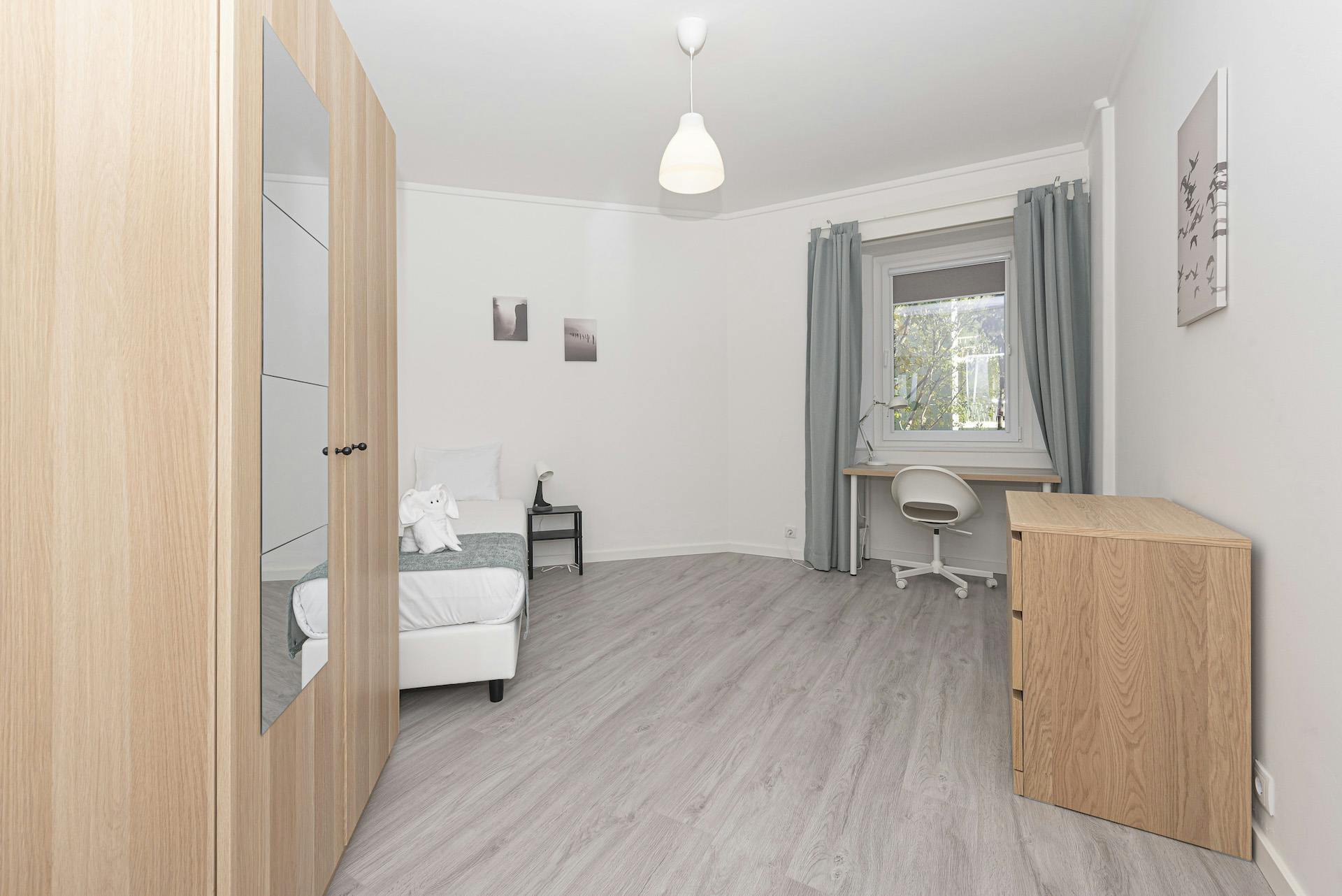 Modern bedroom with a desk space, single bed and full of light. Perfect for studying or working! The shared kitchen is spacious, fully equipped with two washing machines and 2 large fridges , to cater to yours and your roomates' needs. It offers access to a lovely dining space outside. 💢💢💢 ✍To book, tenants need to pay the first month's rent through the platform and then the security deposit. At the check-in, the tenant pays the last month's rent as well. 🔸This apartment is promoted in partnership with Católica Lisbon School of Business & Economics (CLSBE). All CLSBE's students have the following discounts: ✔15€ discount on the first monthly payment ✔3% discount on the total payment if the payment is made upfront 🎯Extra services available upon request: ✅Room Cleaning: ✔Monthly: €20/month ✔Biweekly: €32/month ✔Weekly: €48/month ✅Extra Residence Cleaning: ✔Monthly: €60/month ✔Biweekly: €100/month ✔Weekly: €160/month 🔸Note: ✔The cost needs to be shared by all residents ✔There should bed only one resident responsible for making the payment and collecting the money from the remaining residents. ✅Second bed upgrade: €40/month ✅Minibar in Bedroom: €40/month ✅Fan in Bedroom: €30/month ✅Electric Heater in Bedroom: €60/month ✅Gas Heater in Bedroom: ✔Equipment rental: €25/month ✔Gas cylinder: €35/bottle (cost price) ✅Extra Kitchen Pack: ✔Cooking Pack: €95/Pack ✔Dining Pack: €45/Pack 💢💢�...