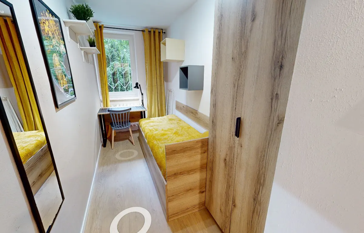 🏡 Your new home in Warsaw! This private bedroom offers a bed, a wardrobe and a desk. The windows allow a lot of natural light in, making this room vibrant and perfect for studying or working. The modern kitchen, which you share with other tenants, is fully equipped. We welcome international students and workers and hope to foster a social and friendly environment for all our tenants!⭐...