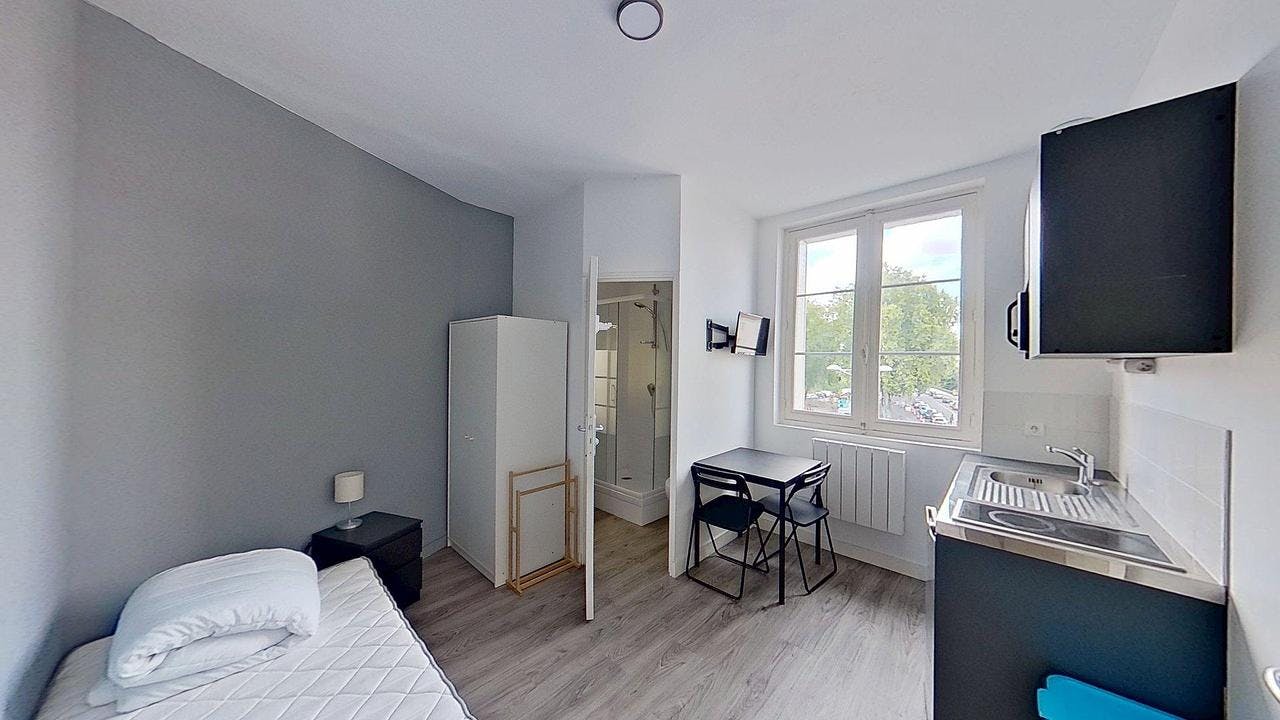 🏠 LES ESPACES COMMUNS Cette colocation est composée d'un couloir qui distribue tous les studios et des WC communes. Une laverie avec machine à laver et sèche-linge est également à disposition de tous les colocataires. Chaque studio est composé de sa chambre, cuisine ouverte, et salle d'eau. 🛏️ LE STUDIO Le studio est composé d'une salle de bain (douche, meuble vasque...) et d'une kitchenette. Il est meublé d'un lit, d'un chevet, d'un bureau, d'une télévision ainsi que d'une armoire. La kitchenette est équipée de meubles de rangements, d'un micro-ondes, ainsi que d'un réfrigérateur. 📍LE QUARTIER Situé au cœur de Poitiers, la Place Jean de Berry, aussi appelée « Porte de Paris », est un carrefour historique et un secteur central très bien desservi et animé. Niveau transports en commun, on trouve à proximité : Bus : de nombreuses lignes desservent la place (13, 17, 21, 35), avec des arrêts tels que Porte de Paris, Pont le Nain ou Abbé Frémont accessibles en quelques minutes à pied. Train & TGV : la gare de Poitiers est accessible en 15 minutes à pied, avec liaisons TGV vers Paris et Bordeaux via la LGV Sud Europe Atlantique. Vous trouverez dans un rayon de 15 min à pied toutes les commodités : supermarchés, boulangeries, banques, pharmacies, ... Le centre-ville et ses commerces, boutiques, restaurants est facilement accessible en 15 minutes à pied. L'Université de Poitiers est située à seulement 10 minutes à pied. Bail individuel à la chambre. Pas de caution solidaire. Chacun est libre de partir quand il veut sans se soucier des autres colocs, dès le moment où il respecte un mois de préavis. Éligible aux APL. Les informations sur les risques auxquels ce bien est exposé sont disponibles sur le site Géorisques : (hidden) Montant estimé des dépenses annuelles d'énergie pour un usage standard : 346 € par an. Prix moyens des énergies indexés sur l'année 2021 (abonnements compris...