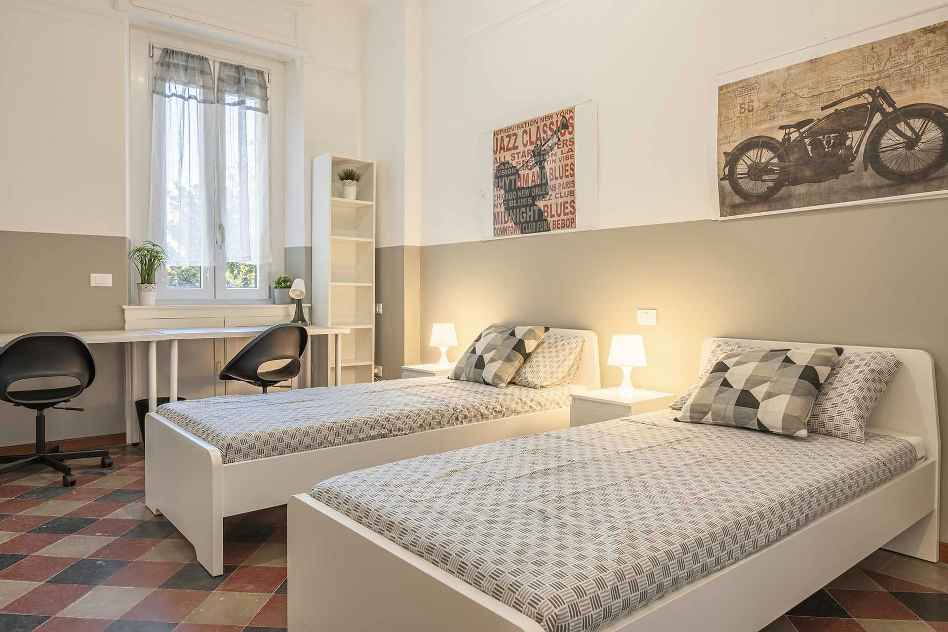 The apartment in Viale Zara 145 is a shared multi-room apartment for university students, interns or young workers. It consists of 3 bedrooms, 2 of which are private and 1 shared with a private bathroom, 1 additional shared bathroom, and a kitchen with a small living area with sofa and TV. The apartment is about 100 square meters and is located on the second floor of a old but very well maintained building, dated fifties. The condominium has a lift and a concierge service. The apartment is located at the beginning of viale Zara, 100 meters far from Piazzale Istria, very close to Maggiolina neighbourhood and hust 10 minutes away from Isola. The apartment has a strategic position to reach the city center with public transportation, thanks to metro station Istria (Purple Line M5), which makes it very well connected also with the Bicocca University, by metro (only one stop) or by walking (15-20 minutes). Close to the apartment it is possible to find any kind of service: at 500 meters from it there is the Esselunga supermarket, as well as restaurants, pizzerias, bars, and other public services. In an apartment located in viale Zara 145, this shared room is reserved for university students, interns or young workers. Fully furnished, it is equipped with two single beds, each one with bedside table and lamp, two wardrobes, two bookcases, two desks and chairs. The room has also a private bathroom. Kitchen, living room and the second bathroom are shared with the other tenants of the apartment. Includes utilities: building expenses, heating, water, electricity, internet, garbage tax, periodical cleaning services of common areas; utilities adjustments excluded. RENTAL CONDITIONS: -BI-WEEKLY CONTRACT: If you move in during the 2nd half of the month, you will only pay half-a-month’s rent for that month. If you move out during the 1st half of the month, you will only pay half-a-month’s rent for that month. I always rent from the first day the room is available. - ALL - INCLUSIVE Monthly rent: water, gas, electricity, wi-fi, condominium fee all included! - DEPOSIT that it will be given back to you at the end of your stay. - CONTRACT REGISTRATION (one time fee): depending on the room you are interested in. Please check the field OTHER to see this fee. - ONE TIME ADMIN FEE: We are a professional property management company and for this reason we also include initial and final cleaning of the room; cleaning of common area of the flat every two weeks; 2 bed-linen; contract activation and termination: professional assistance service and property maintenance during your stay: we will take care of everything! Do you want to finish your contract earlier than agreed? Don’t worry, please inform us and if you find a substitute (of course we can also help you!), you can leave without any type of penalties. Please be aware that HousingAnywhere is an online booking platform. Therefore exchanging contact details and offering viewings is not possible. If you would like to reserve this accommodation, send me a booking request or a message and please mention your age and occupation....