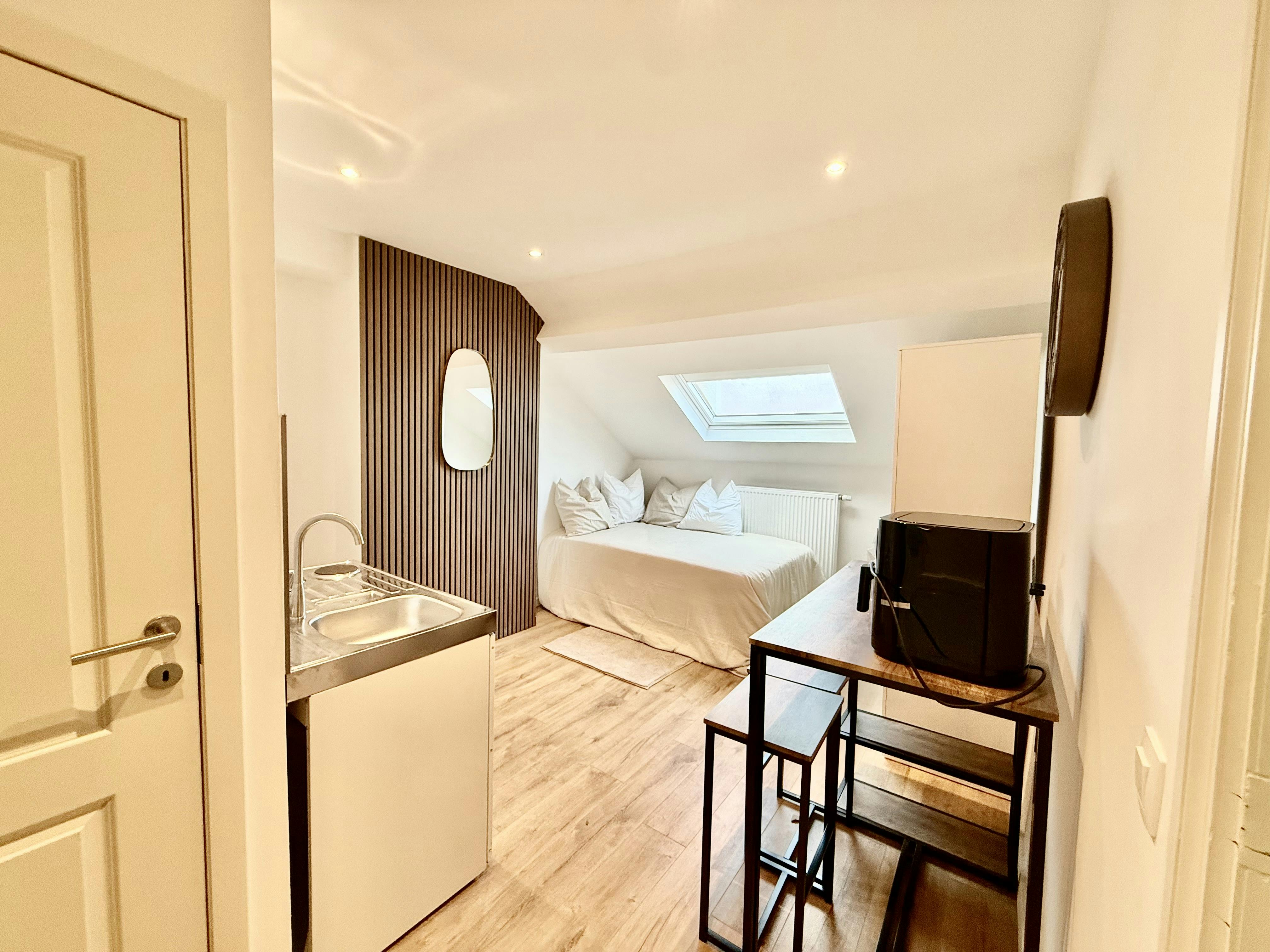 🌿 Magnifique studio 📍 Adresse : Rue Veeweyde Anderlecht 🎓 Public cible : Jeunes étudiants ou jeunes salariés ✅ Domiciliation acceptée Dans une superbe maison en rénovation, découvrez ce studio privatif entièrement équipé, idéalement situé à 3 minutes à pied du métro Saint-Guidon, à proximité immédiate des parcs, des commerces, et du Westland Shopping. 🛏️ Le studio comprend : Un grand lit double Un coin cuisine équipé : réfrigérateur, micro-ondes, ustensiles de cuisine, Airfryer Une belle salle de douche en marbre ✨ À partir de fin septembre 2025, les colocataires auront également accès à de nouveaux espaces communs : Un grand salon lumineux Une salle à manger conviviale Une cuisine américaine entièrement équipée Une terrasse et un jardin partagés Une machine à laver et un sèche-linge à disposition dans la buanderie Une toilette par étage, partagée 🚇 Transports à proximité immédiate : Métro Saint-Guidon à 3 minutes à pied Tram 81 Bus 49, 74, N62, R42, R70, R71, R72 Accès rapide vers le centre-ville, l’ULB, l’hôpital et les institutions européennes 🏥 À proximité de l’Hôpital Erasme – Cliniques Universitaires de Bruxelles (à 20 minutes) 🛍️ Commodités : Westland Shopping, Colruyt, Lidl, laverie automatique, etc. 💡 Services et infos utiles : Non-fumeur Domiciliation acceptée Contrat de 6 mois minimum Assurance incendie locative incluse dans les charges 📦 charges incluant : Eau, électricité, chauffage Internet Wi-Fi Assurance incendie Entretien des parties communes Machine à laver & sèche-linge...