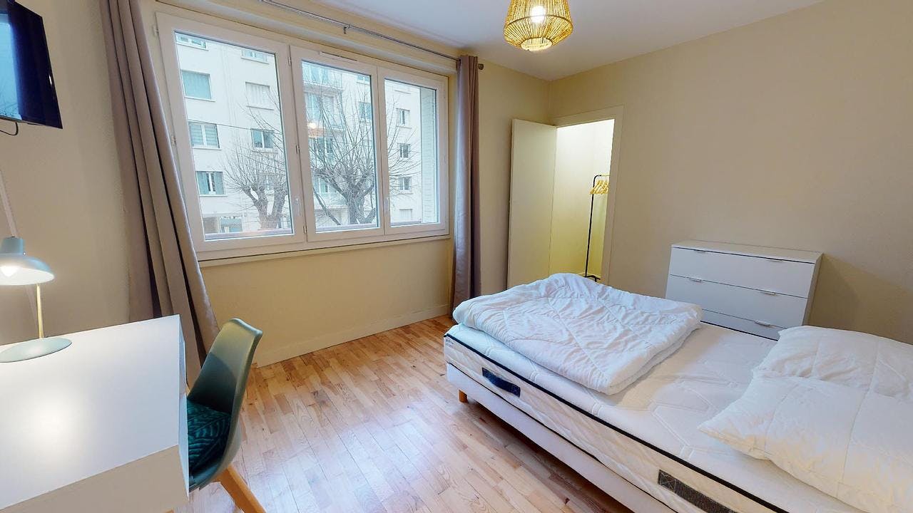 GRAND APPARTEMENT 5 PIÈCES Notre agence vous présente cette colocation de 4 chambres de 84 m2 localisée au 80 Boulevard Lafayette à Clermont-Ferrand (63000). 🛌 LA CHAMBRE Cette seconde chambre est composée d’un lit double, d’une table de chevet avec sa lampe, d’un bureau avec chaise et lampe et d’une commode. Les must: un téléviseur et un dressing indépendant. 🏠 LES ESPACES COMMUNS Cet appartement, récemment rénové, s’ouvre sur un salon/séjour, composé d’un canapé, de tables basses, d’un meuble TV, d’un téléviseur, d’une table à manger et de ses quatre chaises. Des rideaux et un tapis complètent l’ensemble. Juste en face, une cuisine parfaitement aménagée vous propose une plaque de cuisson surmontée d’une hotte, un four, un évier, un réfrigérateur avec congélateur, un lave vaisselle, un mange debout complété et de nombreux rangements. Un wc et deux salles de bains complètent les pièces communes. La première salle de bain est composée d’une grande cabine de douche, d’un lavabo sur meuble, d’un lave-linge, d’un radiateur sèche-serviettes et de rangements, La seconde, est dotée d’une grande douche à l’italienne, d’un lavabo sur meuble et d’un sèche-serviettes électrique ainsi que des rangements. 🌳 LES EXTÉRIEURS Un local vélos et une cave sont présents dans le bâtiment. 🏙️ LE QUARTIER Cet appartement se situe à proximité des commerces du quotidien, alimentation Spar à 700 mètres, boulangerie, pharmacie... Des lieux de restauration rapide, des restaurants et des transports en commun, station Vincent d’Indy, bus 8 et C à 3 minutes à pied. Bus C, 10 minutes: l’Université Clermont Auvergne. A pied, 10 minutes : l’U.F.R. Lettres, Cultures et Sciences Humaines. Clermont-Ferrand est une des nombreuses villes prisées par les étudiants. ———————————————————————— Bail individuel à la chambre. Pas de caution solidaire. Chacun est libre de partir quand il veut sans se soucier des autres colocs, dès le moment où il respecte un mois de préavis. Eligible aux APL. Les informations sur les risques auxquels ce bien est exposé sont disponibles sur le site Géorisques : (hidden) Montant estimé des dépenses annuelles d'énergie pour un usage standard : 2498 € par an. Prix moyens des énergies indexés sur l'année 2021,2022,2023 (abonnements compris...