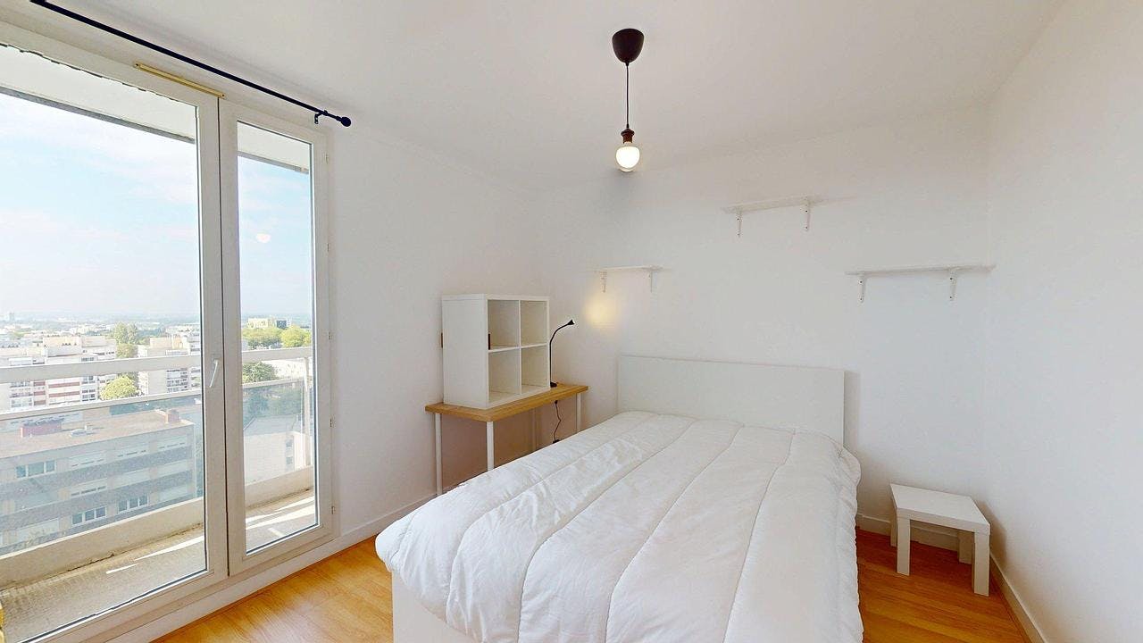 Notre agence vous présente cette colocation de 4 chambres de 92 m2 au 4 Cours Président John Fitzgerald Kennedy, 35000 Rennes. Le logement est situé au 12ème étage avec une belle vue dégagée, sans aucun vis à vis. 🏠 LES ESPACES COMMUNS La pièce de vie est meublée avec canapé d'angle et table basse, bibliothèque de rangement, fauteuil ainsi que deux petites tables basse. Elle donne sur le balcon, vous donnant une vue dégagée sur l'extérieur. La cuisine, séparée, est équipée d'un four, de plaques de cuisson, d'une hotte, d'un évier, d'un réfrigérateur avec compartiment congélateur ainsi que de rangements et ustensiles de cuisine. Elle donne également accès au balcon. La salle d'eau comporte une douche, un meuble vasque avec miroir. Les WC sont séparés. 🛏️ LA CHAMBRE Elle est équipée d'un lit (double), bureau, et d'un dressing. Le plus : elle donne accès au balcon 📍 LE QUARTIER Une université se trouve juste à côté : l'université Université Rennes 2. Côté transports en commun, il y a 14 lignes de bus ainsi que la ligne de métro a (Villejean-Université). Il y a un accès à la nationale N136 à 1 km. Pour vos loisirs, vous pourrez compter sur un bassin de natation dans les environs. On trouve également des restaurants, des commerces, trois boulangeries, deux supermarchés, des épiceries et une supérette. Enfin, le marché Rue de Bourgogne a lieu chaque vendredi matin. Le centre-ville et ses commerces, boutiques, restaurants est facilement accessible (par les transports en commun / à pied.) Bail individuel à la chambre. Pas de caution solidaire. Chacun est libre de partir quand il veut sans se soucier des autres colocs, dès le moment où il respecte un mois de préavis. Éligible aux APL. Les informations sur les risques auxquels ce bien est exposé sont disponibles sur le site Géorisques : (hidden) Montant estimé des dépenses annuelles d'énergie pour un usage standard : 1355 € par an. Prix moyens des énergies indexés sur l'année 2022 (abonnements compris...