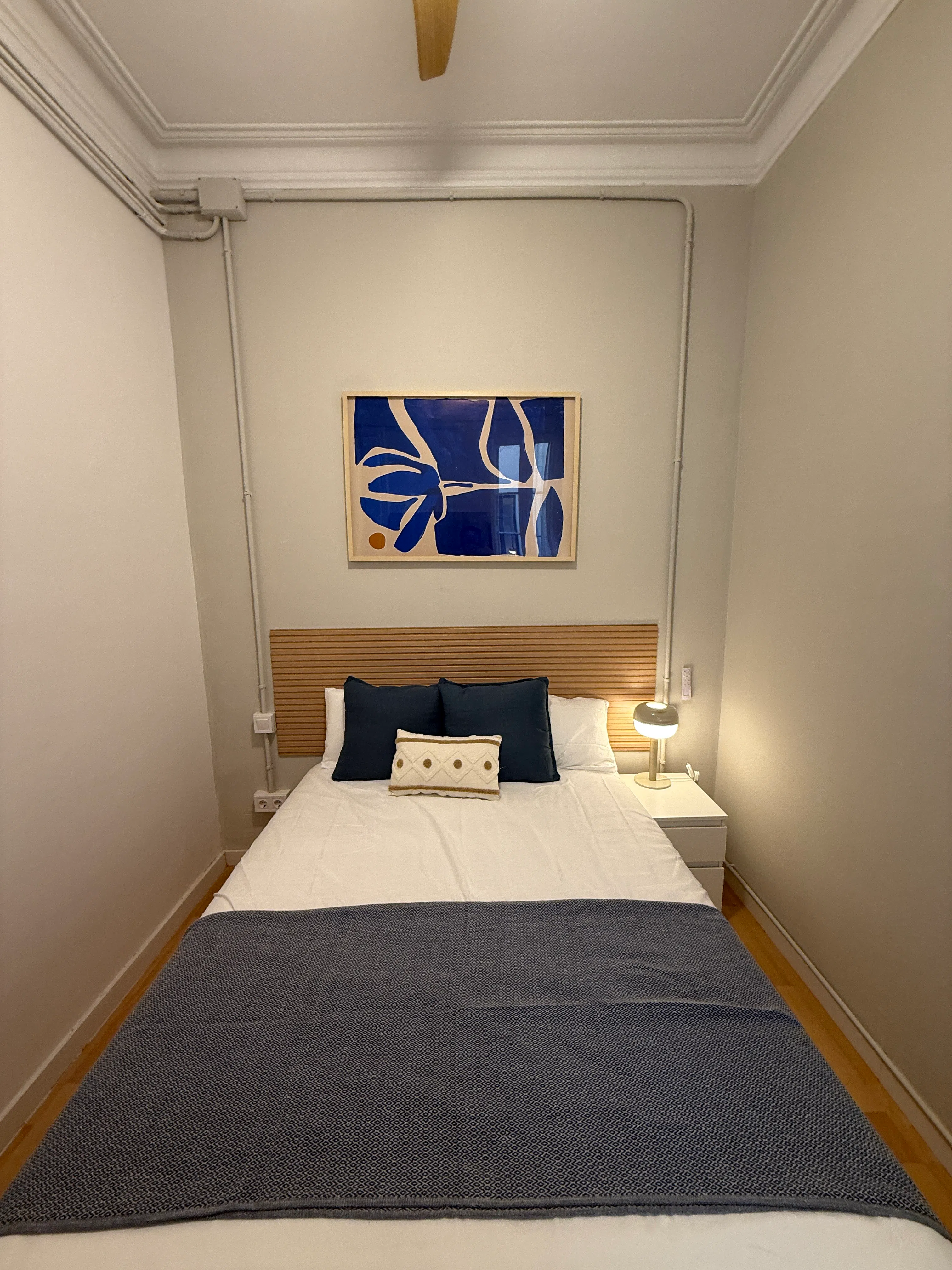 Looking for a comfortable, well-located room in the heart of Barcelona? This private room is part of a recently renovated 7-bedroom, 2-bathroom apartment, ideal for international students or young professionals who want privacy, comfort, and a vibrant, central neighborhood. 📍 Location: In the Eixample Esquerra district, just off Gran Via, one of the most connected and dynamic areas in the city. You'll be just: 4 min walk to Rocafort Metro (L1) 6 min walk to Urgell Metro (L1) 10 min walk to Plaça Universitat 15 min walk to Passeig de Gràcia Surrounded by supermarkets, gyms, cafés, and restaurants 🏠 The Apartment: 7 private bedrooms 2 full shared bathrooms Fully equipped kitchen with dining area Recently renovated: bright, functional and move-in ready Clean and comfortable shared spaces 🛏️ The Room: Fully furnished with bed, desk, wardrobe and chair Clean bed sheets provided upon arrival 💡 Included: Water, gas, high-speed Wi-Fi Weekly cleaning of shared areas Electricity billed separately, based on usage Perfect for those looking for a well-connected and fully equipped space in the center of Barcelona, with everything you need to feel at home...
