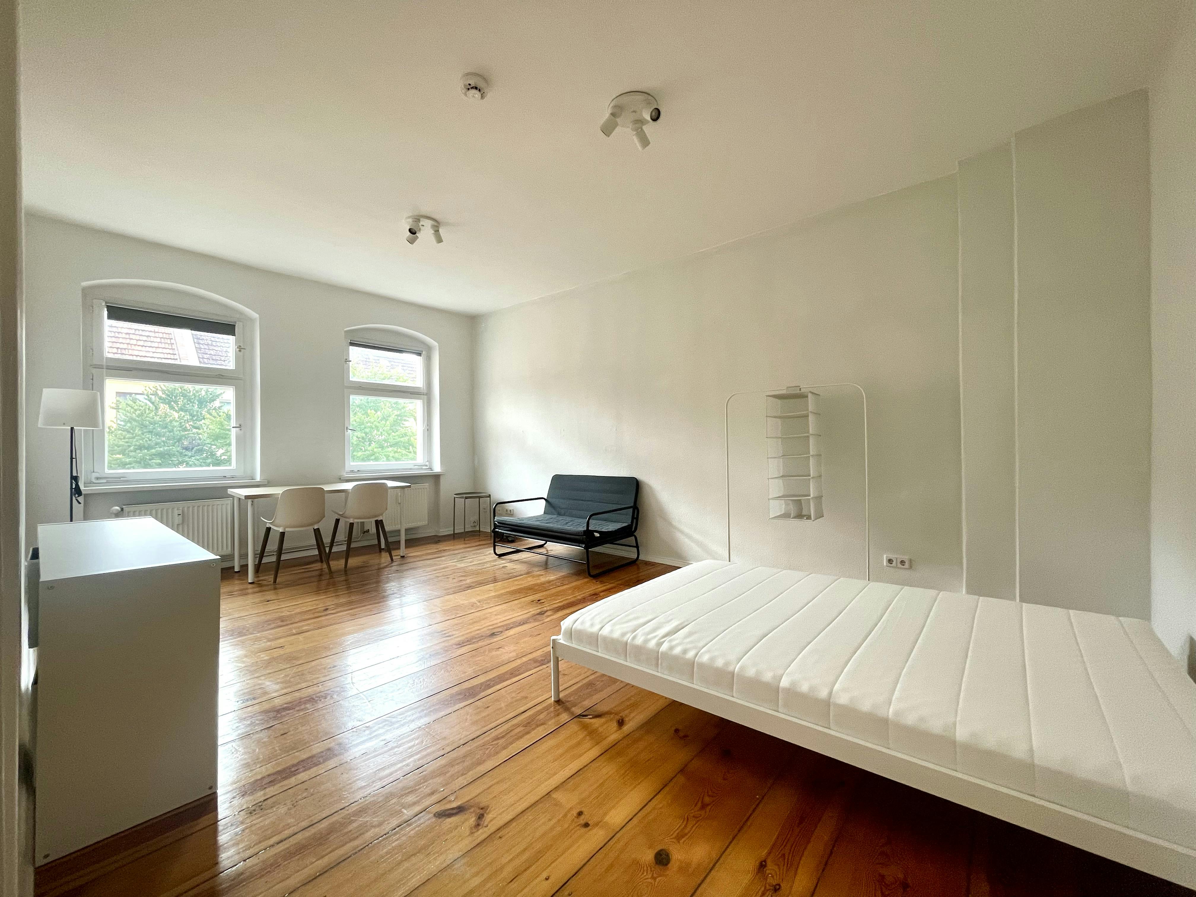 Our 1 room apartment with a separate kitchen located in Wedding, Berlin. The apartment has a total surface of 44 m2, suitable for maximum 2 occupants. The area our lovely apartment locates in is very calm and green. It’s a 4th floor apartment with its windows facing to the vast green backyard of the quiet neighbourhood. From Wedding is less 30 minutes by car to go to Berlin’s major meeting points like Alexanderplatz, Hauptbahnhof, Zoologischer Garten und Hackescher Market. From the apartment to: Bus station is 7 minutes’ walk Tram station is 6 minutes’ walk Subway station is 8 minutes’ walk Th light furnishings and their natural colours give the room’s interior a neat and clean vibe to sooth the traveling feet and soul. The apartment comes with a brand new white lacquered kitchen with microwave, just need to get the start set of pots and pans ,you will enjoy preparing a gourmet or on the go meals. The bathroom is spacious with a shower. A washing machine is available to make your life easier and especially the laundry can be done discretely away from the main living area. Enough space to leave clean linens dry up in the open air using the provided rack. The apartment offers a queen size bed (140X200 CM), clothes hanger and free wifi (100Mb). If you book this apartment, the following rules apply: If your booking start date is between the 1st to the 15th of the month, the full month's rent is due. If your booking start date is between the 16th and the last day of the month, the second half month's rent is due. If your end date of booking is between the 1st to the 15th of the month, the first half month's rent is due. If your end date of booking is between the 16th and the last day of the month, the second half month's rent is due. Smoking is not permitted. Please Note: The rental deposit is one month's rent. If we accept you as a tenant please deliver the following documents within 7 DAYS: proof of enrolment at your school/university, a bank statement which proves sufficient funds available to pay the rent - a work contract is also suitable. If we do not receive the documents within 7 days after you have completed the payment we will cancel the booking via HousingAnywhere and claim the first month according to their Terms&Conditions. If the move-in date is within these 7 days we need the documents 24 hours before move-in at the latest Before moving in, tenants must provide proof of valid personal liability insurance (“Haftpflichtversicherung”). This insurance covers damages caused to the apartment or to third parties. It is highly recommended in Germany and often included with personal property insurance (“Hausratversicherung”). Without proof of insurance, keys cannot be handed over...