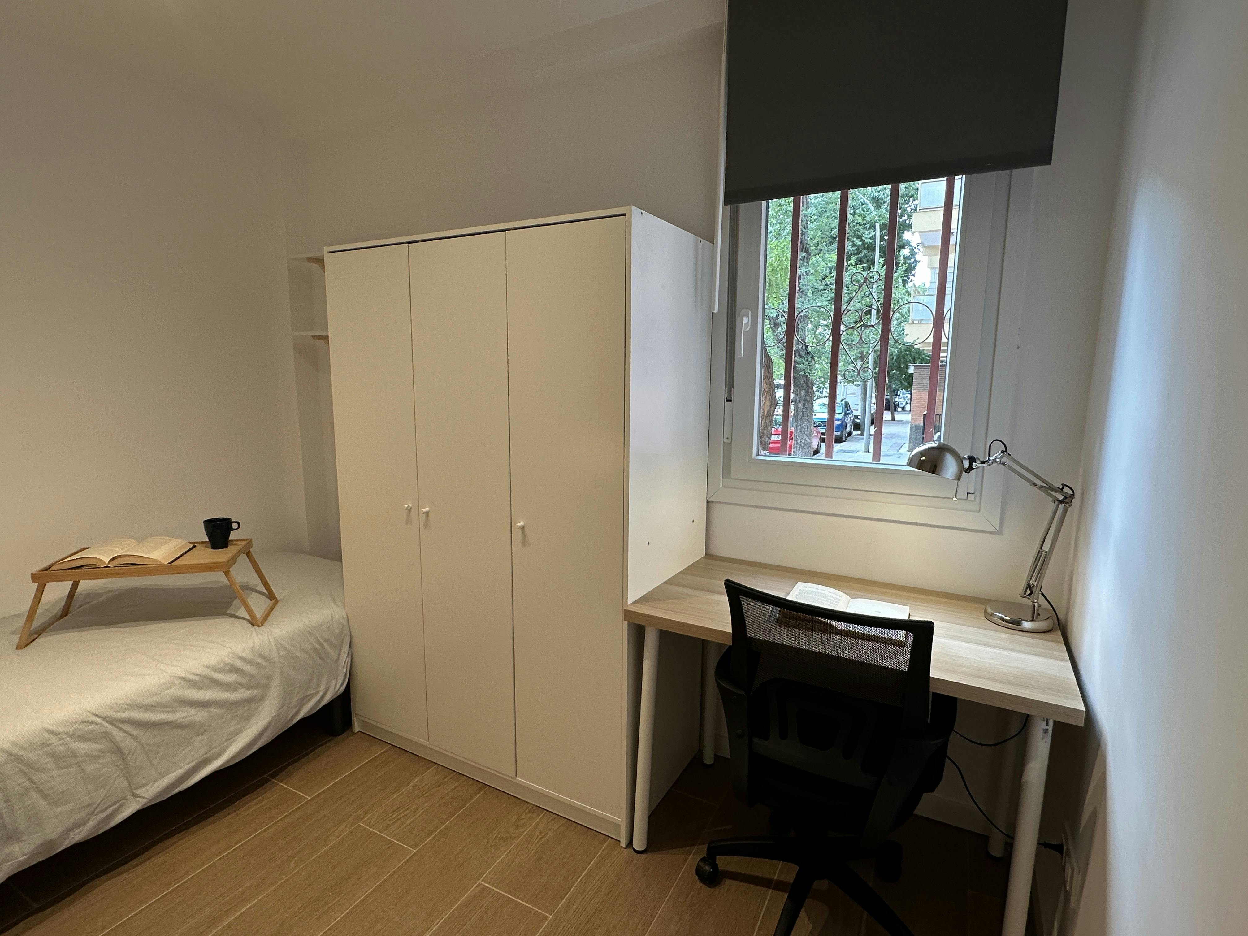 Explore the youthful and academic energy in the picturesque neighborhood of Opañel , located in Carabanchel, Madrid. With the *Oporto* and *Urgel* metro stations just a few steps away, this neighborhood offers students a *convenient location* to access various *educational institutions*. Opañel is an ideal enclave for those seeking a dynamic and diverse student experience. Among the nearby universities are Universidad Rey Juan Carlos and Universidad Carlos III , providing residents with exceptional academic opportunities and contributing to the intellectual vitality of the neighborhood. With a diverse array of *bars, cafés, and restaurants* , Opañel caters to every palate, providing students with ideal options for socializing and relaxing after classes. Additionally, the presence of green spaces such as Parque de las Cruces offers a tranquil environment for outdoor studying or enjoying recreational activities. This neighborhood also boasts *supermarkets and shops* , ensuring that students have easy access to everything they need for their daily lives. Proximity to other cultural and artistic neighborhoods allows residents to *explore museums, galleries, and cultural events* , further expanding their horizons and experiences. Rental conditions: - Free Check-in time: 9:00h - 18:00h from Monday to Friday. - We offer to pick up service from the airport with a cost of 65€+VAT - The utility costs are as described in the listing. Nevertheless, if the usage of utilities exceeds the amount that the fixed price for utilities covers, it might be that extra costs will have to be paid. Please, be aware that HousingAnywhere is an online booking platform. Therefore exchanging contact details and offering viewings is not possible. If you would like to reserve this accommodation, send me a booking request or a message and I will get back to you as soon as possible....