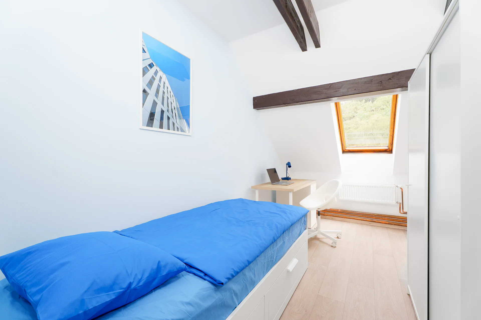 91316 | ☀️ We are pleased to offer you this sunny, fully furnished room 🛏️ in Prague, located in the Residence Kolčavka, just a short walk from Palmovka metro station 🚇, with excellent public transport connections — about ten minutes to the metro (yellow line B) and five minutes to the tram stop 🚋. About the property: This residence features a modern design ✨ with bright and cozy interiors 🌟 that create a pleasant and comfortable atmosphere. The sunny room is fully furnished, and the price includes everything 💰 (internet, utilities, etc.). We offer a room in a spacious apartment 🏠.This unit includes seven separate rooms and three shared bathrooms 🚿.There is also one common area — a fully equipped kitchen 🍳, available for all tenants. The kitchen is designed for comfortable shared living and comes with a large refrigerator with freezer ❄️, a stove 🔥, an oven, a dishwasher, and a washing machine 🧺, along with all essential kitchenware and utensils 🍴. The apartment is regularly maintained 🧹, and all common areas are cleaned on schedule 🗓️. This room for rent is located on the third floor 🏢. It comes with a bed 🛏️, desk 📝, wardrobe 👗, bed linen, and everything needed for a comfortable stay. 💰 The price includes EVERYTHING — high-speed Wi-Fi 🌐, electricity, water, and other utilities 💧⚡. Deposit: one month’s rent 💵. For stays shorter than three months, the deposit is fifty percent of the monthly rent. Proof of accommodation 🏠 or a business license 🏢 can be provided upon request. Residence Kolčavka offers great public transport connections 🚇🚋 — just a few minutes’ walk 🚶♂️🚶♀️ to the metro and tram stations. Summary: A perfect choice for international tenants 🌍! The apartment is fully ready to move in 🏡 with no extra costs 💸. We already have many happy tenants from all over the world 🙂�...