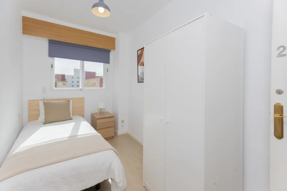 Flat in Calle San Vicente Martir Charming bright apartment located on the main and longest avenue of Valencia, ideal for both students and young professionals. The property has four bedrooms, offering a comfortable and versatile space to share. It includes a full bathroom and an additional private bathroom connected to one of the rooms. The cozy living-dining room, with a television, allows you to enjoy a pleasant and comfortable atmosphere during your stay. The independent kitchen has natural ventilation, making it a functional and comfortable space, and it is fully equipped. The building has an elevator and adapted access, being a recent construction with a good community of neighbors. Thanks to its orientation, the apartment benefits from good cross ventilation, ensuring a pleasant temperature throughout the year. The property is located in the La Raiosa neighborhood, next to Plaza España, a consolidated and highly valued area thanks to its excellent range of services, just 10 minutes’ walk from the city center and with great transport connections. The surroundings offer a wide variety of local shops, supermarkets such as Mercadona, Lidl, and Consum, traditional pharmacies, bakeries, and neighborhood stores that make daily life easy without the need for long trips. Just a few minutes’ walk away is Joaquín Sorolla station, from where you can take trips to other cities in Spain and reach the capital, Madrid, in just 1 hour and 30 minutes. The neighborhood has numerous public and semi-private schools, both for primary and secondary education, and is well connected to universities by public transport. For leisure and sports, Central Park stands out — one of the city’s green lungs — with children’s play areas, sports facilities, and large open spaces for walking or exercising outdoors. In the area you can also find gyms, cultural centers, academies, traditional bars, and modern cafés, making it a lively neighborhood throughout the day without being noisy. The presence of metro stations and bus lines makes this neighborhood an ideal option both for those working in the city center and for those who need to travel frequently. The property is located on Calle San Vicente Mártir, one of the main access and exit roads of Valencia, perfectly connected both to the city center and to other residential and service areas. Just a few steps away is Jesús metro station, with direct connection to key points such as the historic center, Estación del Norte, the airport, and several universities. On the same avenue there are multiple EMT bus stops with frequent lines connecting all neighborhoods of Valencia, allowing comfortable mobility without the need for a private vehicle. In addition, the Valenbisi bike-sharing system has nearby stations, offering an ecological and convenient way to move around Valencia. With an annual subscription, bicycles can be used to travel sustainably throughout the city and parked at any other station. The location of the apartment allows easy access to some of the main cultural and tourist attractions of Valencia thanks to its excellent connection with the city center and historic neighborhoods. Just a few steps away is Valencia’s Historic Center, where you can visit iconic landmarks such as Plaza del Ayuntamiento, Valencia Cathedral, La Lonja de la Seda (a UNESCO World Heritage Site), and the Central Market, one of the largest and oldest in Europe. Also nearby is the Turia Gardens, a vast linear park that runs across the city from west to east, connecting to attractions such as the Bioparc — a new-generation zoo located less than 10 minutes away by car or public transport from the apartment. Central Park, located just a short walk from the property, is another highlight in the neighborhood, offering green areas and open spaces for outdoor activities. The area also features historic churches, traditional Valencian residential architecture, and quick access to more modern areas such as the Saler Shopping Center, perfect for shopping, leisure, and dining. Thanks to the proximity to the metro network, you can easily reach the City of Arts and Sciences, the Oceanogràfic, and Valencia’s urban beaches such as Malvarrosa and Las Arenas. * No smoking * No pets allowed * No parties * Take out the trash daily * Short visits are allowed Comfortable single room Comfortable room on Calle San Vicente Mártir, with direct connection to the center of Valencia. This cozy space includes air conditioning, a 90x190 cm bed, a wardrobe, and a desk with lamp and chair. The room also has a lockable door for privacy and security. Perfect for international students or young professionals looking for a well-connected place. Bed linen is not included, only a mattress cover is provided Please keep in mind that the amount requested in the "other additional costs" field refers to tenant assistance coverage....