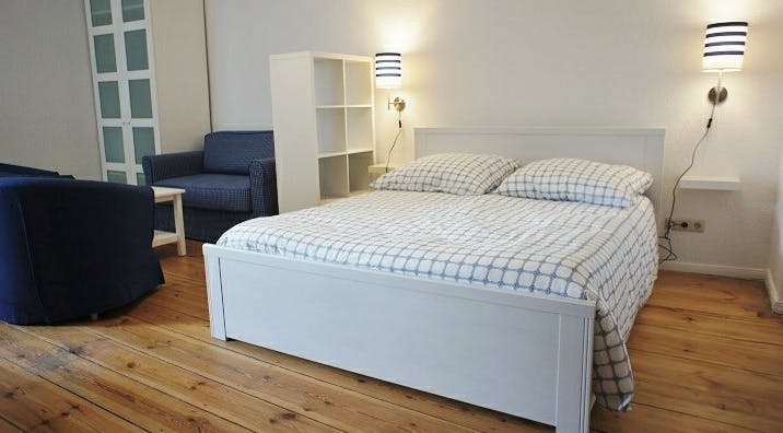 Dieses Objekt befindet sich im 1.OG eines Altbaus mit Blick in den großen und lichtdurchfluteten Garten; es ist liebevoll eingerichtet und ideal für 1 oder 2 Personen. Die farbliche Zusammenstellung und Funktionalität dieser Wohnung sind bewundernswert: zarte Farbtöne und funktionelle Einrichtungsstücke sind die Stärkepunkte dieser Wohnung. Der bequeme Eingangsbereich, die offene Küche mit geräumigem Essbereich und großem Schlafzimmer, einem Wohnzimmerbereich mit Sesseln, einem Schrank und einer Kommode, in der all das, was Sie möchten verstaut werden kann, und ein schöner Schreibtisch. All dies und vieles mehr werden Sie in diesem wunderschönen finden. Die Wohnung ist folgendermaßen eingerichtet. Diele: Abstellschrank Küche: Einbauküche mit Elektrogeräten, Kochfeld, Ofen, Dunstabzugshaube, Tisch, Stühlen, Dekos Schlafzimmer und Wohnzimmerbereich: Doppelbett, Nachttische, Regal, Kommode, Schlafcouch, Sessel, Schrank, Dekos, Lampen Bad: Eckregal, Dusche mit Duschkabine, Unterschrank.. Die Wohnung ist folgendermaßen ausgestattet. Diele: Reinigungsset, Staubsauger Küche: Mikrowelle, Wasserkocher, Töpfe, Pfannen, Küchenutensilien, Besteck, Geschirr, Gläser, Tassen Schlafzimmer und Wohnzimmerbereich: Decken, Kissen, Bettwäsche, Handtücher, TV Bad: Haartrockner, Seifenspender, Zahnbürstenhalter, Waschmaschine...