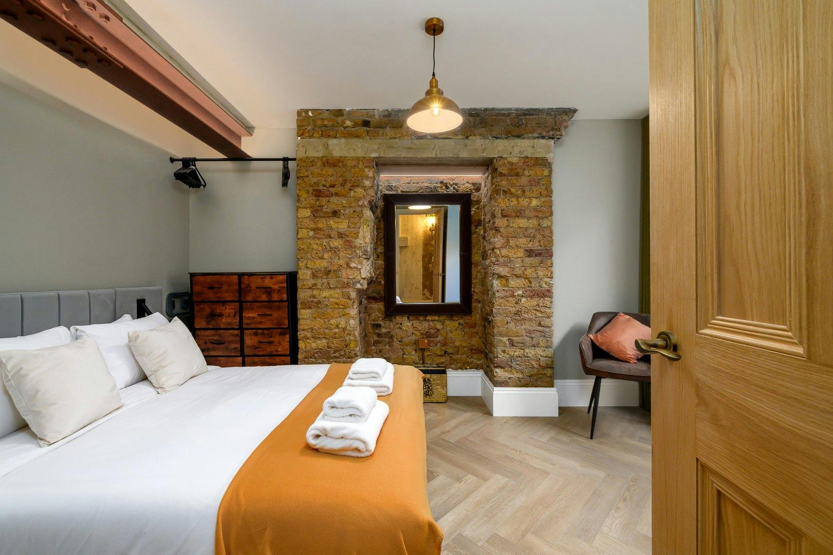 Welcome! Step into a stylish living area where exposed brick walls and industrial accents create a warm, welcoming atmosphere. Unwind on the comfortable sofa bed, ideal for relaxing evenings or streaming your favourite shows on the smart TV. The open-plan kitchen blends seamlessly into the space and comes fully equipped with modern appliances, including an oven, microwave, and dishwasher, perfect for both quick meals and home cooking. The bedroom contains a comfortable double bed with hotel-quality linens to ensure a good night's sleep and multiple storage spaces. The bathroom has all the amenities you will need to freshen up, including fresh towels and toiletries for your convenience. The apartment is always professionally cleaned for your comfort. Enjoy your stay...