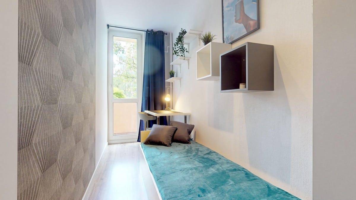 🏡 Fully furnished room for rent in a 5-room apartment – ul. Anielewicza 🌳 Located in a quiet area with a green housing estate square, this 1st-floor apartment offers 5 fully furnished single rooms, a shared kitchen, bathroom, and hall. Each room comes with a desk, chair, couch, bookshelves, and a wardrobe, ensuring both comfort and functionality. 🛋️ 🍳 The kitchen is fully equipped with all essentials, including a fridge, microwave, induction hob, kettle, and complete kitchenware. The apartment also features a washing machine, vacuum cleaner, ironing board, and high-speed internet (300 Mb/s). 🚀 An elevator makes daily living even more convenient....