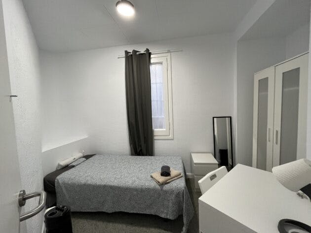PISO 10 Sant Joan Room 13 Room with window to and interior patio - Single bed. Wardrobe, nightstand, desk and chair. Closing the room with a padlock. Center of Barcelona. This apartment is in a wonderful location for students. The area around the apartment has numerous shops and restaurants, as well as cultural institutions like the Arco del Triunfo and the Sagrada Familia. While there’s plenty to do in the neighborhood, you’ll probably want to explore the rest of the city. Fortunately, that will be easy to do with public transportation. Not only can you enjoy this vibrant area and its connections to the rest of the city, but you can come home to an apartment decorated with a youthful style. The apartment includes a shared dining room, kitchen and bathrooms. SERVICES: - Maintenance service included - If you want to change your flat or room, we will offer you the rooms that we have available for you to choose the one you like the most. RENTAL CONDITIONS: - Only payments: Monthly rent + expenses and refundable deposit - You must pay the rent before the 5th day of each month. - Utilities: water, gas, electricity and internet are 100€ per month. - Deposite: 1000€ - Minimum stay: 1 month. GUESTS POLICY: - One guest is allowed to stay in the room a maximum period of 7 nights. - Previous notification by email is required. - First 2 nights are for free. - After the 2nd night there is an extra cost of 40€ per night. - Guests must sleep in the same bedroom as the tenant. Never in common areas. - These rules are not applicable to July and August, when guests are not allowed to stay over....