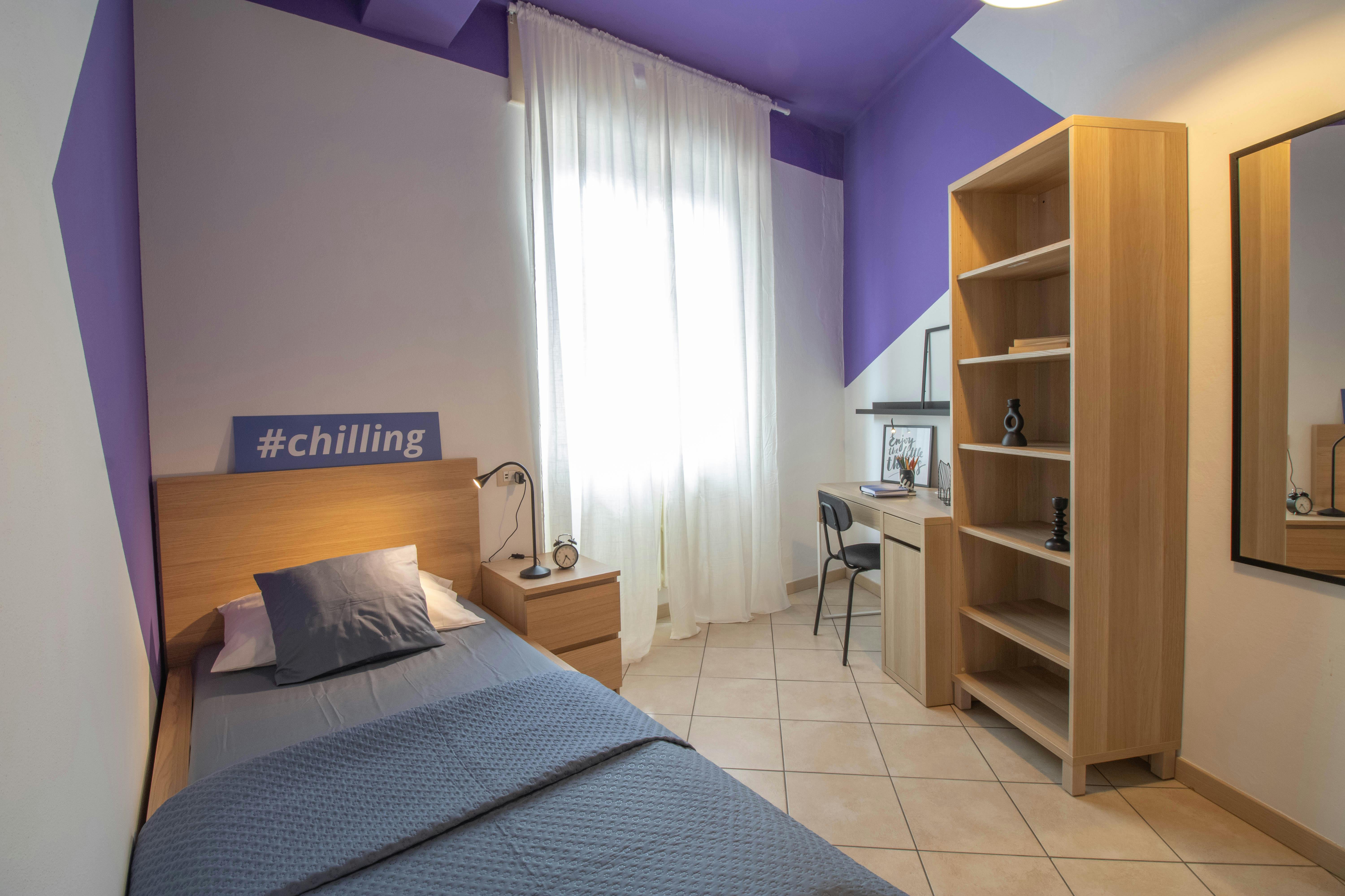 LARGE SINGLE ROOM in a charming renovated apartment, located at Via Ferrini 44, Pavia! The apartment is ideally located for students, a short walk from the main faculties of the University of Pavia and close to public transport. You can easily reach the Faculty of Law, the Faculty of Letters and Philosophy, and the Faculty of Political Science. Living here means having everything you need for studying and university life within easy reach, with convenient access to libraries and academic services, restaurants, cafes, supermarkets (100mt) , pharmacies (250 mt), ATM with bank branch (100 mt), etc. The apartment has been completely renovated and offers: 5 bedrooms, a large kitchen-living room and 2 bathrooms. The available room is a superior room with: - a single bed, - desk, large 2-door wardrobe, chest of drawers, shoe rack - A modern kitchen, complete with all necessary appliances and crockery - Super-fast Wi-Fi - A well-furnished bathrooms - All this for a price of € 500 per month, all inclusive. Advantages: Maintenance included No need to register utilitie...