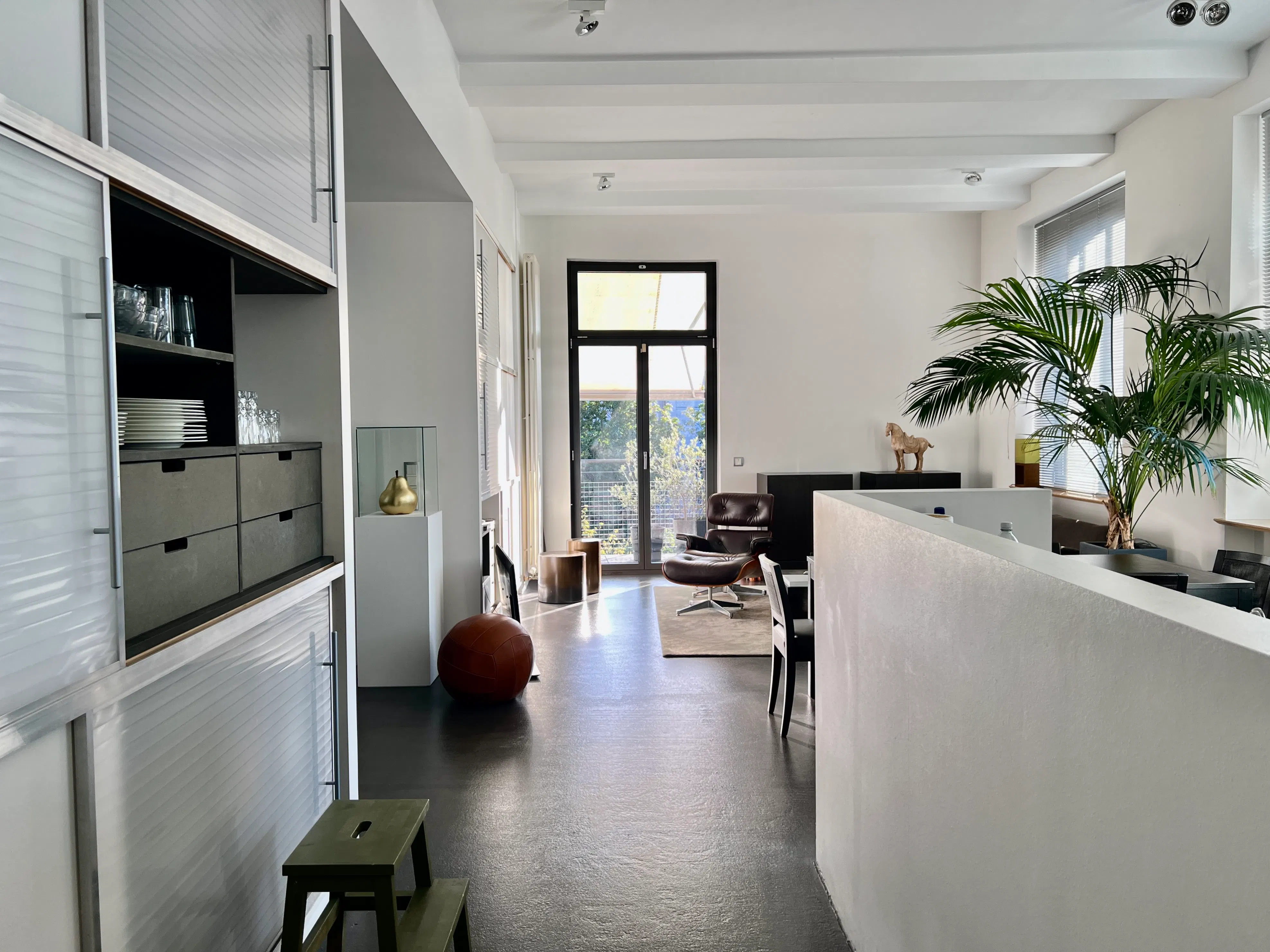 This exceptional and spacious loft apartment is a true gem in the heart of the capital. It combines a modern, urban lifestyle with timeless elegance and the highest level of comfort. Located in a quiet, secluded spot, you can enjoy complete privacy while the vibrant Berlin life around Potsdamer Platz and the Park am Gleisdreieck is just a few steps away. The open floor plan allows for numerous living arrangements and perfectly integrates the combination of living and a home office. Features The apartment is fully and meticulously furnished, exclusively with high-quality designer pieces: Exclusive Schramm bed for uncompromising sleeping comfort Extendable bed and workspace in one room USM Haller shelving systems - iconic design & functionality Leicht kitchen with state-of-the-art Miele appliances for culinary demands TV with Google Chromecast and sound bar Alarmsystem Bathroom with a separate bathtub and shower, plus an extra guest toilet Washing machine & dryer integrated Spacious balcony with a wide view Elegant epoxy resin and slate floor - stylish and easy to clean The location could hardly be better: It's in the immediate vicinity of Potsdamer Platz, with its shopping and cultural offerings, as well as the popular Park am Gleisdreieck. Here, urban life, international cuisine, art, and culture meet a quiet, protected living situation—a rare combination in the middle of Berlin....