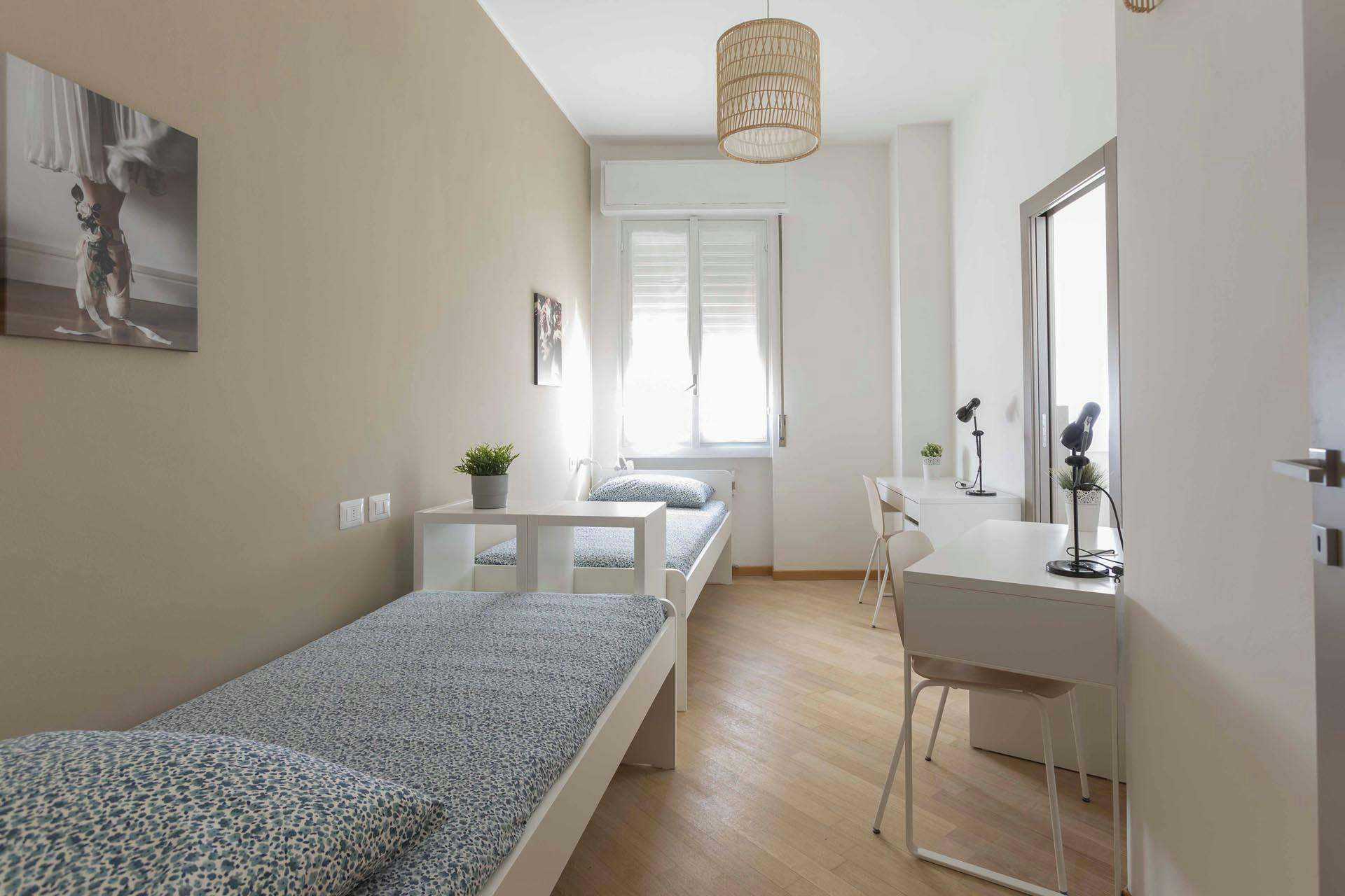 This shared apartment for university students, interns or young workers, is located in via privata Boschetti, close to Piazza Carbonari. It is composed of a wide living room with open kitchen, 3 bedrooms, of which 2 private and 1 shared room, and 2 bathrooms. The apartment is located in a very quiet street close to Piazza Carbonari, in the neighbourhood of Maggiolina, so named after a famous old farmhouse of the XVI century. It is a very quiet neighbourhood, although close to the more lively districts of Centrale and Isola. It is very well connected with 3 metro stations: Marche, metro M5 Purple, Zara, metro M5 Purple and M3 Yellow, and Sondrio, metro M3 Yellow, all of them 500-600 meters far from the flat. In viale Marche, less than 200 meters far, there is also the stop of the tram line n.5. This apartment is perfect for students of Città Studi and Bicocca. The neighbourhood has all the services: supermarkets, stores, bars and restaurants. In an apartment located in via privata Erasmo Boschetti 2, this shared room is reserved for university students, interns or young workers. Fully furnished, it is equipped with two single beds, each one with bedside table and lamp, two wardrobes, two bookcases, two desks and chairs. Kitchen, living room and bathrooms are shared with the other tenants of the apartment. Includes utilities: building expenses, heating, water, electricity, internet, garbage tax, periodical cleaning services of common areas; utilities adjustments excluded. RENTAL CONDITIONS: -BI-WEEKLY CONTRACT: If you move in during the 2nd half of the month, you will only pay half-a-month’s rent for that month. If you move out during the 1st half of the month, you will only pay half-a-month’s rent for that month. I always rent from the first day the room is available. - ALL - INCLUSIVE Monthly rent: water, gas, electricity, wi-fi, condominium fee all included! - DEPOSIT that it will be given back to you at the end of your stay. - CONTRACT REGISTRATION (one time fee): depending on the room you are interested in. Please check the field OTHER to see this fee. - ONE TIME ADMIN FEE: We are a professional property management company and for this reason we also include initial and final cleaning of the room; cleaning of common area of the flat every two weeks; 2 bed-linen; contract activation and termination: professional assistance service and property maintenance during your stay: we will take care of everything! Do you want to finish your contract earlier than agreed? Don’t worry, please inform us and if you find a substitute (of course we can also help you!), you can leave without any type of penalties. Please be aware that HousingAnywhere is an online booking platform. Therefore exchanging contact details and offering viewings is not possible. If you would like to reserve this accommodation, send me a booking request or a message and please mention your age and occupation....