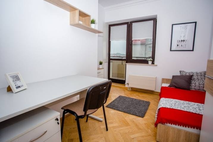 ✨ Cozy Single Room with balcony in a Spacious Shared Apartment – Perfect Location in Warsaw! ✨ 🏡 Apartment Features This cozy 14-room apartment is located on the 3rd floor, offering both peace and privacy 🌿. Inside, you’ll find 14 comfortable single rooms 🛌, a functional kitchenette 🍳 perfect for preparing meals, three bathrooms with toilets 🛀 for added comfort, a separate toilet 🚽, and a welcoming hall that connects the shared spaces seamlessly. 🛏️ Your Room The single room comes fully furnished, providing everything you need for a comfortable stay. It’s a bright and cozy space, perfect for students or young professionals looking for a peaceful yet connected home base. 🌳 Neighborhood LNestled in the peaceful and green district of Kabaty 🌿, this apartment offers the perfect mix of nature and city convenience. Just 100–200 m from the beautiful Kabacki Forest 🌳 — ideal for walking, running, or cycling 🚴♀️ — it’s a great spot for relaxation and outdoor activities. The Kabaty Metro Station 🚇 is only 800–900 m away (10–12 min walk), ensuring fast access to the rest of Warsaw. Perfect for students 🎓, with SGGW, Vistula, and Lazarski Universities all within 20–30 minutes by public transport, and central universities (UW, WUT, SGH) reachable in about 30–45 minutes. Daily life is convenient with shops like Żabka (200 m), Biedronka (700 m), Leclerc Kabaty, and Lidl (1 km) all nearby 🛍️. The nearest bus stop “Pod Strzechą” 🚌 is just 100 m away, and a Veturilo city bike station 🚴♀️ is within a short walk (700 m). For leisure, Powsin Culture Park 🌺 with its botanical garden is just 3 km away! 💬 Send a message today to learn more and make this your next home in Warsaw!...