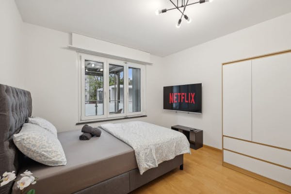 Welcome to Pearlstay – a fully equipped private room in a renovated apartment with excellent connectivity in Winterthur! 55" 4K Smart TV + Netflix/Prime 24" monitor + 10 Gbit/s fiber internet Work desk + private fridge Free washer & dryer Shared kitchen, bath, dining & balcony Supermarket & bus just 2 min away 20 min to Zurich or Schaffhausen...