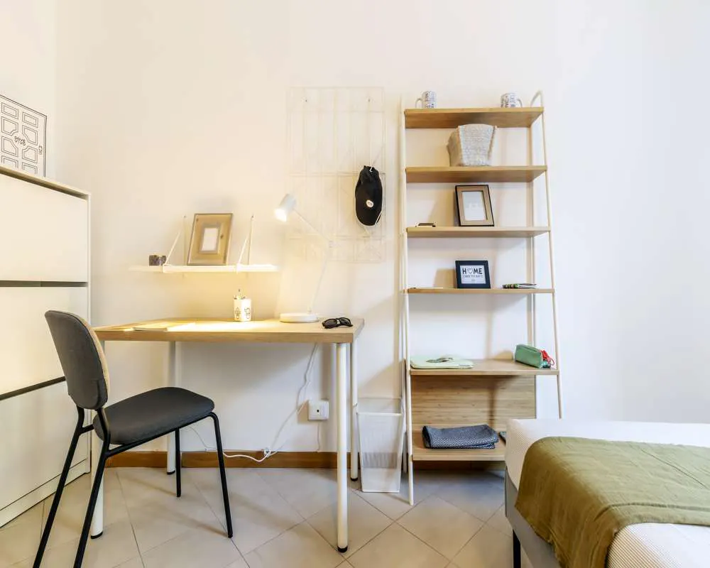 Single room in a shared apartment, composed by 3 bedrooms and 2 bathrooms. Of about 13 sqm with a single bed and a work station, A private bathroom complete the opportunity. With wifi, air conditioning, dishwasher, washing machine. Energy class: D, IPE 51.00 Kwh/Sqm year. Current tenants: 1: 23, Female, Worker 2: 19, Female, Student Please be aware that HousingAnywhere is an online booking platform. Therefore exchanging contact details and offering viewings is not possible. If you would like to reserve this accommodation, send me a booking request or a message and please mention your age and occupation. I look forward to talking to you! CONTRACT Please, note that to all our listings we apply fortnightly contracts. This means that If you check-in during the first half of the month, you will be charged for the full month. If you check-in during the second half of the month, you will only be charged for the second half. The second half of the month starts on the 16th. If you check-out during the first half of the month, you will only pay until the 15th of that month. If you check-out during the second half of the month, you will be charged the full month....