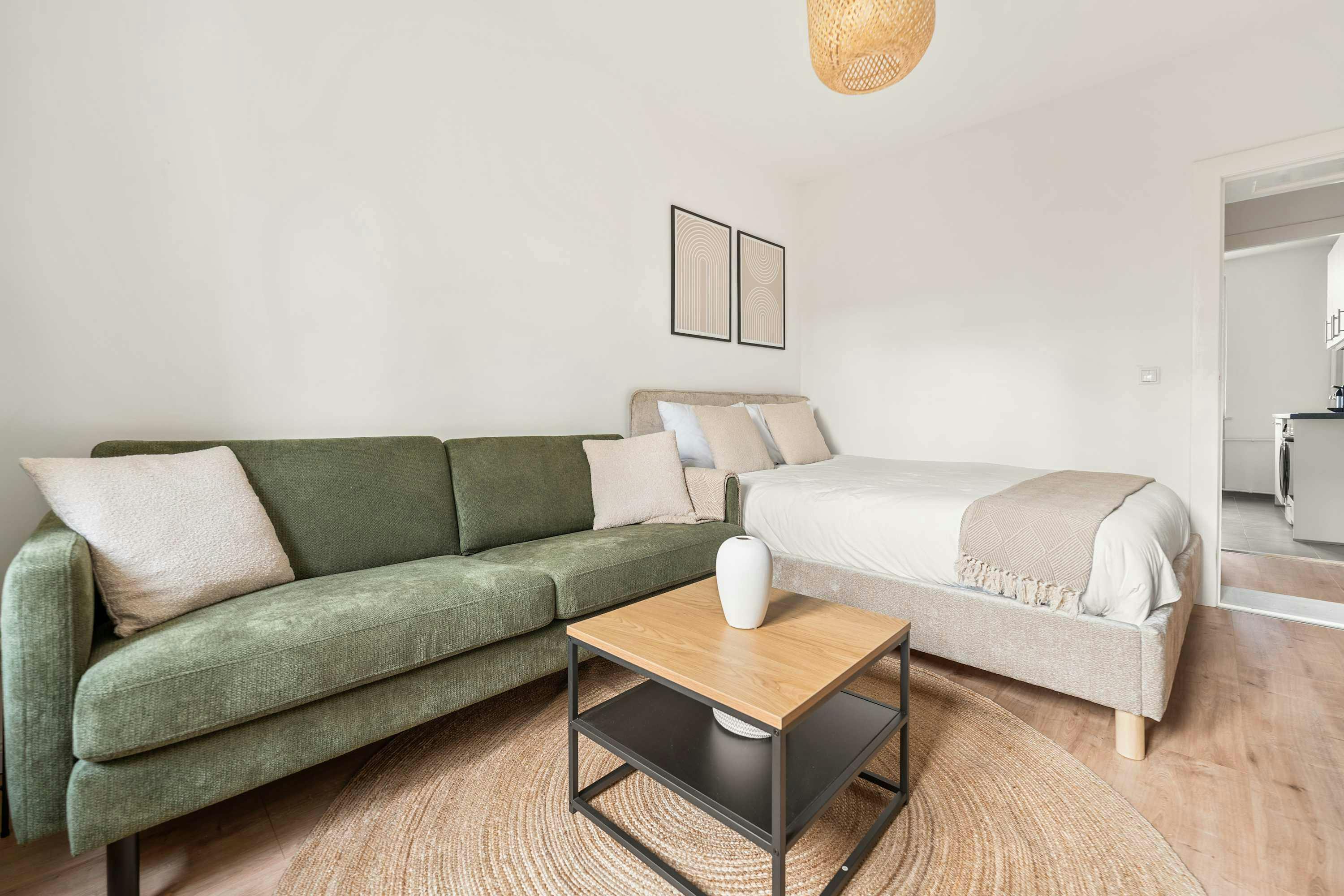 This stunning furnished studio apartment features contemporary design, a fully equipped kitchen, and a cozy living area with breathtaking views. Perfectly situated, you'll have easy access to everything that makes Berlin vibrant and exciting! Wedding is a lively and diverse neighborhood, known for its authentic Berlin charm. With its mix of historic buildings, green parks like Volkspark Rehberge, and a growing creative scene, Wedding offers a unique blend of tradition and modernity. Excellent transport links make it easy to reach all parts of the city...