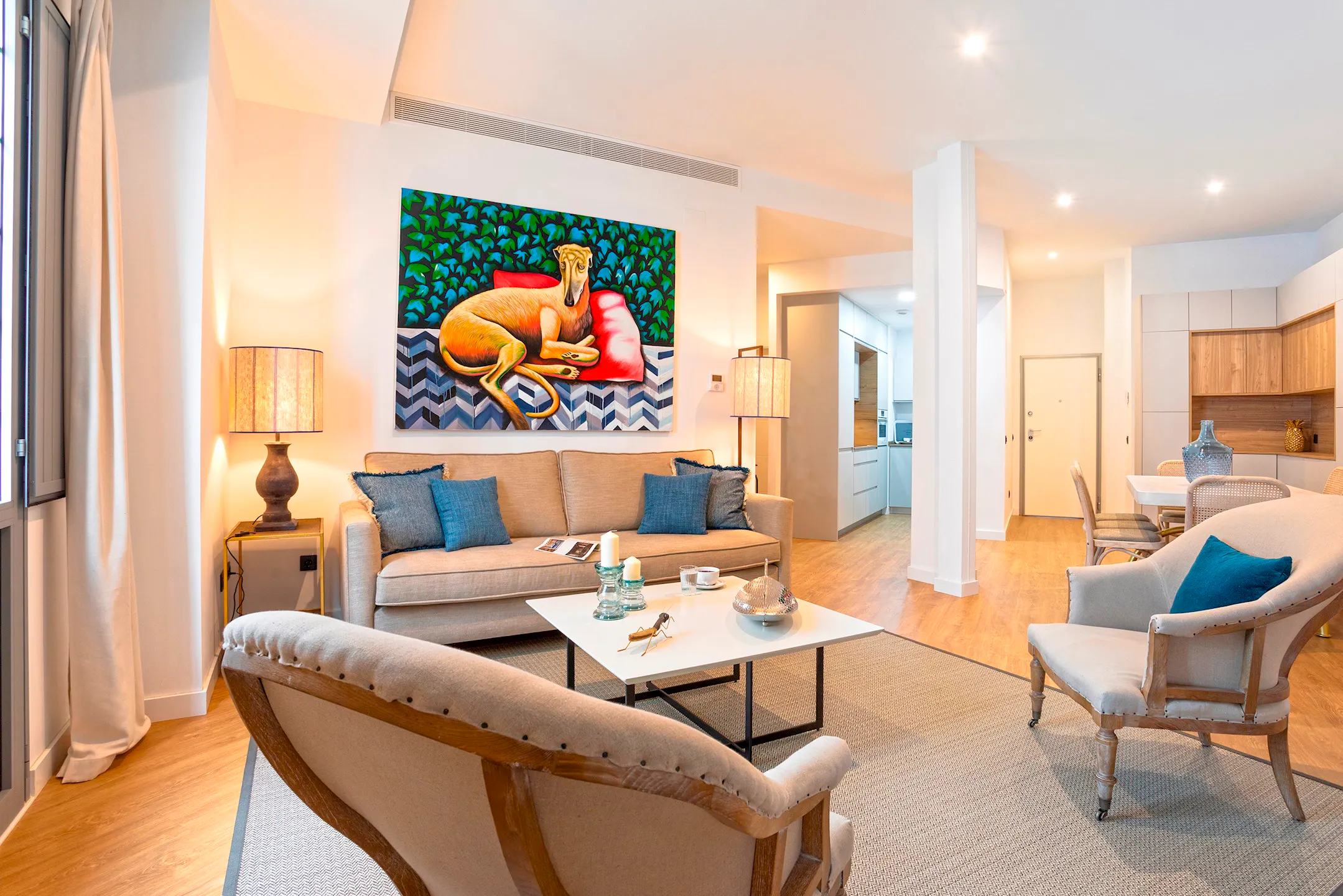 This fantastic three-bedroom apartment is located in the heart of Seville, just steps away from the city’s main attractions. The building has been fully renovated and stylishly decorated. Upon entering, you will find a spacious open-plan living and dining area, filled with natural light thanks to a balcony overlooking the main facade. The living room features a comfortable double sofa bed, seating for up to eight guests, two armchairs, and a 55-inch Smart TV. There is also a large dining table perfect for gatherings and meals. The kitchen is connected to the living area and fully equipped with all the necessary utensils and appliances for a comfortable stay. The first bedroom, accessible directly from the living room, has a double bed measuring 140 by 180 cm, a large built-in wardrobe, and a window facing Calle Goyeneta, providing plenty of natural light. The other two bedrooms are located down a corridor to the right of the living room. Both have double beds, one measuring 140 by 190 cm and the other 150 by 200 cm. The latter features an en-suite bathroom with a spacious shower. Both bedrooms have balconies overlooking the main facade and large built-in wardrobes. Opposite these rooms is the second full bathroom, also equipped with a shower. The apartment is situated in one of Seville’s best areas, very close to Plaza de la Encarnación and the famous Setas de Sevilla, as well as the Cathedral, the Giralda, and other historic landmarks. You can easily explore the entire historic center on foot without the need for transportation. The booking of each (hidden) accommodation includes the offer of extra experiences or activities to improve your experience, which are managed by external providers, who will inform you by e-mail or (hidden), and you can contract or refuse them. For more information about the management of experiences and extra activities of the accommodations, please visit our Privacy Policy on our official website. ** For monthly stays, water and electricity supplies will be included up to a maximum of € 100 per month. If the expenses are higher, the guest will have to pay the difference. The corresponding invoice will be sent by the accommodation to the guest to verify the expenses** During your stay, the access to the property is limited exclusively to the number of individuals specified at the booking process. Consequently, entry to the property is strictly prohibited for persons not registered as guests. Failure to adhere to this rule will result in an additional charge amounting to 50% of the total cost of the stay as a penalty, or alternatively, immediate expulsion from the accommodation...