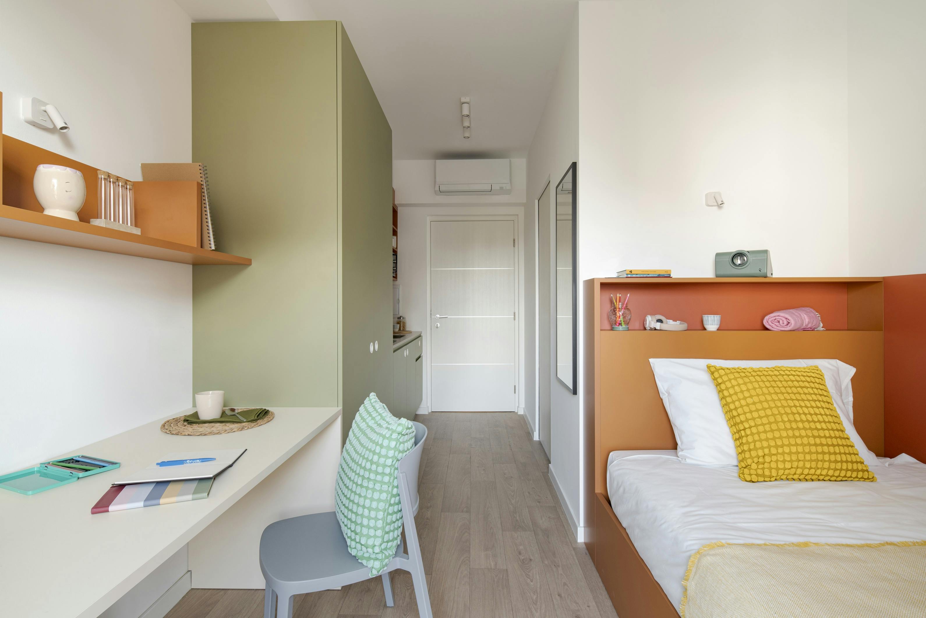 🔸Cleaning room included in the price. It is fortnightly. 🔸Booking periods 25/26🔸 - 5 months: January-May - 6 months: January-June - 7 months: January-July - 8 months: January-August - 5 months: Feb-June - 6 months: Feb-July - 7 months: Feb-Aug 🔸Only students. Mandatory admission letter from your university 🔸We do not provide linen 💢 STUDIO (private kitchen and private bathroom) 💢 -Single occupancy -Comfy bed (120*200 cm with underneath storage) -Study area with desk and chair -Plenty of storage -WiFi 🏡 Residence & Living Experience The perfect student residence in Florence. Whether you prefer privacy or shared living, every room is designed for comfort and independence. All rooms include a private balcony, a fully equipped kitchenette (with fridge, induction hob, microwave, sink and storage), modern furniture, and clever design details to make student life easier. 💛 Enjoy Amazing Amenities: • Cinema room for movie nights • Dedicated study rooms for quiet focus • All utilities included • Fun and engaging Experience Programme • Fully equipped fitness area • Relaxing yoga studio • Convenient on-site laundry room 📍 Location & Neighborhood Our brand-new student residence in the lively and creative Rifredi district of Florence. Just a short walk from the University of Florence campuses (Careggi and Novoli), NYU Florence, and Rifredi train station, the residence offers easy access to the city centre and all the essentials...