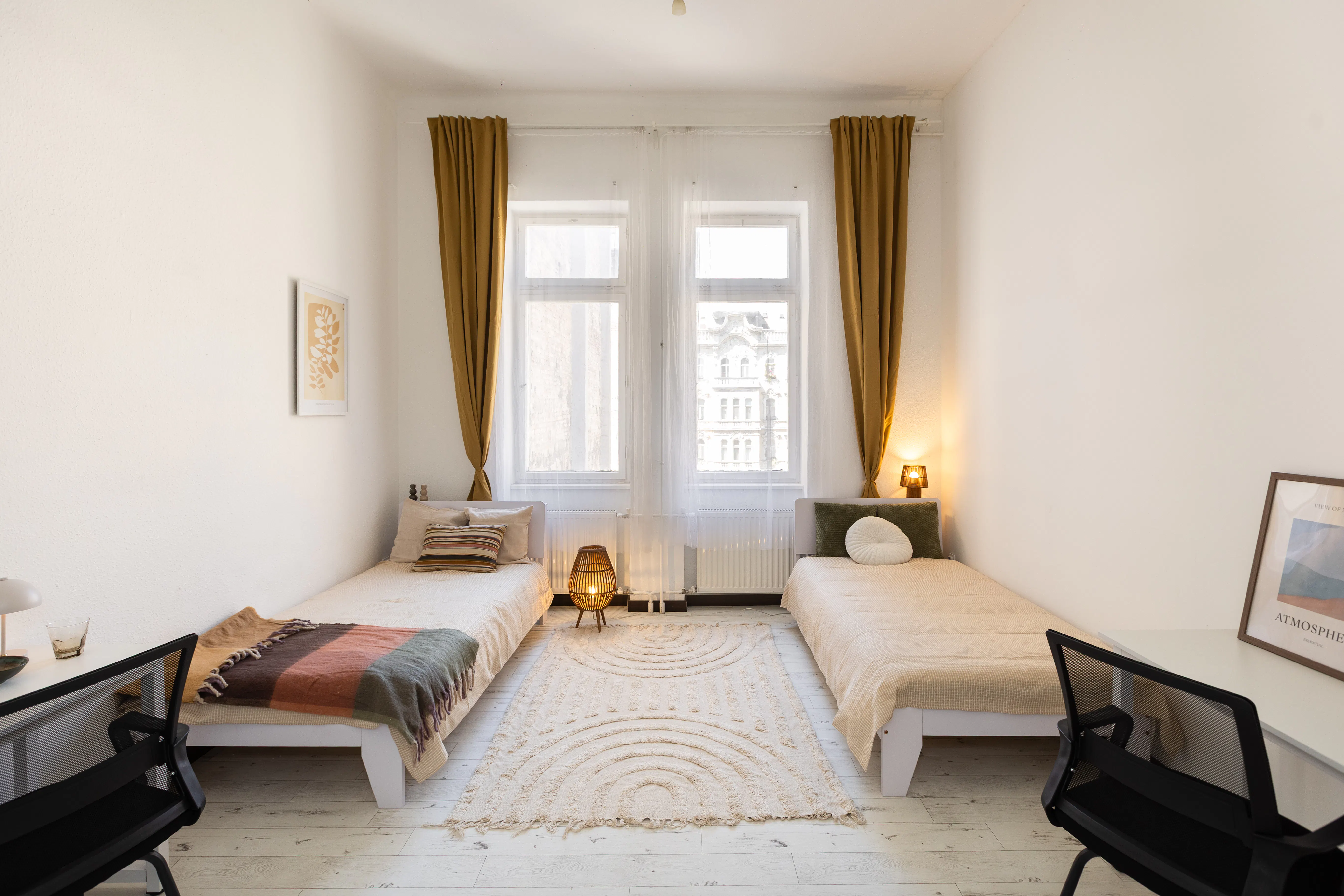This co-living building is perfect for students, professionals, or anyone seeking a comfortable and well-equipped shared space in an amazingly prime Budapest location. Make this your new home and enjoy the ideal combination of comfort, convenience, and community living. Located in the inner city center, our fully furnished rooms offer a fresh and contemporary ambience with brand-new premium furniture. This gender-separated room is suitable for two people and features: Two separate single beds, each with a brand-new mattress and fresh linens Individual desks and chairs for each tenant Spacious closets/wardrobes for personal storage Shared bathroom facilities The room is fully prepared for co-living, offering privacy and functionality for each resident. APARTMENT Our spacious, modern building is designed for co-living, providing a comfortable and convenient living experience for all residents. Enjoy a newly furnished common space, complete with a well-equipped kitchen and laundry facilities, including: Fridge | Freezer | Oven | Stove | Washing machine | Dining table | Microwave NEIGHBORHOOD Situated along the well-connected Thököly Road in Budapest’s lively District 7, Thököly út 18 offers a prime location that combines urban accessibility with local charm. This area is favored for its vibrant street life, excellent public transport links, and rich mix of tradition and modernity. Thököly út is a major thoroughfare, yet the apartment is located in a part of the neighborhood that retains a peaceful, everyday charm. Nearby, you’ll find classic Hungarian eateries, local cafés, and small shops that add to the authentic atmosphere. For a more modern touch, surrounding districts offer diverse restaurants, bars, and cultural venues. The location is especially convenient for students and professionals alike. ELTE, McDaniel College, the Veterinary University, and Keleti Railway Station are all within walking distance. With numerous tram, bus, and metro connections right outside your door, the entire city is easily accessible. Green spaces like City Park are close by, offering an escape into nature for jogging, strolling, or relaxing. Thököly út 18 strikes a perfect balance between vibrant city life and neighborhood comfort — making it an ideal base in the heart of Budapest. PLEASE NOTE: Bills are not included in the rent price. An admin fee (one-time, payable before check-in) applies. 🕗 CHECK-IN TIME: Monday to Friday – from 8:00 am to 6:00 pm If you require a different check-in time, message us and we will try to accommodate your request 🔊 RENTAL CONDITIONS: A rental contract must be signed and respected by the tenant(s) Required documents: a copy of an ID document and fiscal number All tenants must be listed during the booking and check-in process Please note that we kindly request you to complete all payments (deposit & admin fee) within 48 hours of signing your contract. Security deposit will be returned if the accommodation is left in the same condition as received. The deposit cannot be used as payment for the final month’s rent Tenants are expected to keep the accommodation clean and in good condition No parties, loud noise after 22:00, or smoking indoors No pets or animals allowed Guests are permitted for a maximum of 5 days, with longer stays subject to prior approval We issue legal rental contracts, provide official receipts, and can assist with residential visa applications if needed. Note: Photos are representative of the room's layout and design. Actual furniture placement may vary slightly...