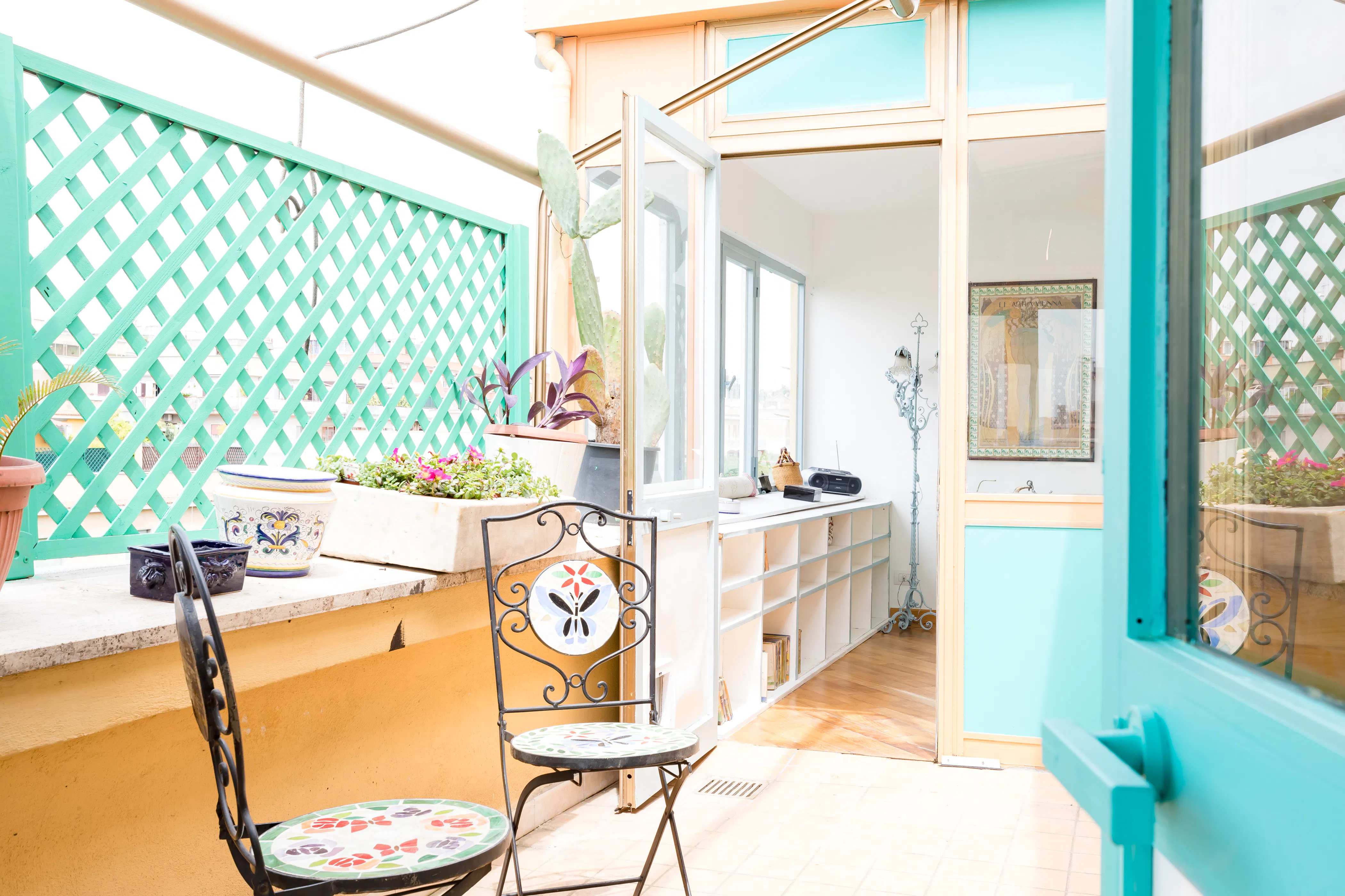 Top floor Apartment with terrace, very bright in the heart of Monteverde Vecchio, just a few steps from all services. Tastefully furnished, with objects that infuse harmony and well-being. The bathroom has a bath and shower, in the kitchen there is everything you need, various utensils, 4 burners, oven, fridge and even a convenient dishwasher. The bedroom has a small double bed and in the living room there is a double sofa bed. Washing machine, wifi and Air conditioning. 30 minutes walking from Vatican and (15 minutes by bus) and well connected to the city center, bohemian house with a lots of windows, very bright, has been built with quality and natural materials, has works of art and antiques, parquet, books and more. Charming, bright and warm house in the heart of Monteverde Vecchio....