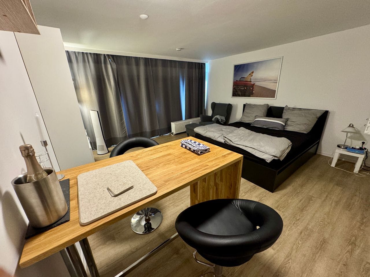 Move right into this stylish 33 m2 studio apartment, ideally located between Osdorf and Klein Flottbek. Designed for comfort and convenience, this thoughtfully equipped unit is perfect for singles or couples seeking a turn-key home in one of Hamburg’s most premium neighborhoods. The apartment is in a multi-story building with an elevator and is literally across the street from the Elbe-Einkaufszentrum — a major mall offering an outstanding selection of shops, dining options, and recreational activities. Daily errands are effortless with Edeka just a 2-minute walk away, and a bus stop right at the entrance to the building ensures easy public transport access. Apartment Features: - Fully renovated with stylish, modern finishes Fully furnished – ready to move in - Full kitchen with appliances and cookware - In-unit washing machine and dryer - High speed Internet / WiFi included - Bright, open layout with 33 m2 of living space - Located in a multi-story building with elevator access Location Highlights: - Elbe-Einkaufszentrum directly across the street – with diverse shopping, dining, and leisure options - Edeka grocery store a short 2-minute walk from the building - Bus stop at the building’s entrance – quick connections throughout the city - Close to the International School of Hamburg - Nestled between Osdorf and Klein Flottbek – a peaceful, central area Parking: No on-site parking available, but overnight parking is available at Elbe-Einkaufszentrum, just steps away Additional Information: - Ideal for two people - Long-term rental preferre...