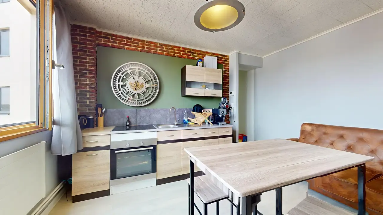 Notre agence vous propose cette agréable colocation de 3 chambres, située au 100 avenue du Général Leclerc à Nancy, au sein d’une résidence sécurisée et bien entretenue. Au 16e étage avec ascenseur, cet appartement lumineux de 75 m2 offre une vue dégagée et un cadre de vie confortable. 🏡 LES ESPACES COMMUNSLe logement se compose de :Une pièce de vie conviviale, équipée d’un canapé, d’une télévision, ainsi que d’une table haute avec tabourets, idéale pour partager des moments entre colocataires. Une cuisine moderne et entièrement équipée : four, lave-vaisselle, micro-ondes, plaques de cuisson, machine à café, réfrigérateur américain, etc. Une salle d’eau refaite à neuf, comprenant une douche, un sèche-serviettes, un meuble vasque avec miroir et des WC intégrés. Chauffage collectif. Fibre optique disponible pour un accès internet haut débit. La chambre dispose d'un lit double , d'une penderie et d'un bureau. Les plus de la résidence : Local vélos Gardien 📍 Un emplacement idéal :Transports en commun à proximité immédiate : Bus et tramway T1 (arrêt Garenne) à moins de 400 m Accès rapide aux axes routiers A330, A31 et A33 10 minutes à pied du campus Sciences Po 10 minutes en voiture de l’ICN Business School et de l’Université de Lorraine 🛍️ Loisirs & commodités :Cinéma Caméo Saint-Sébastien, piscines, tennis, commerces, restaurants, supermarchés, boulangeries, bureau de poste... tout est à portée de main ! Le marché de la place du Marché, chaque dimanche matin, apporte une vraie vie de quartier. Les informations sur les risques auxquels ce bien est exposé sont disponibles sur le site Géorisques : (hidden) Montant estimé des dépenses annuelles d'énergie pour un usage standard : 842 € par an. Prix moyens des énergies indexés sur l'année 2021 (abonnements compris...