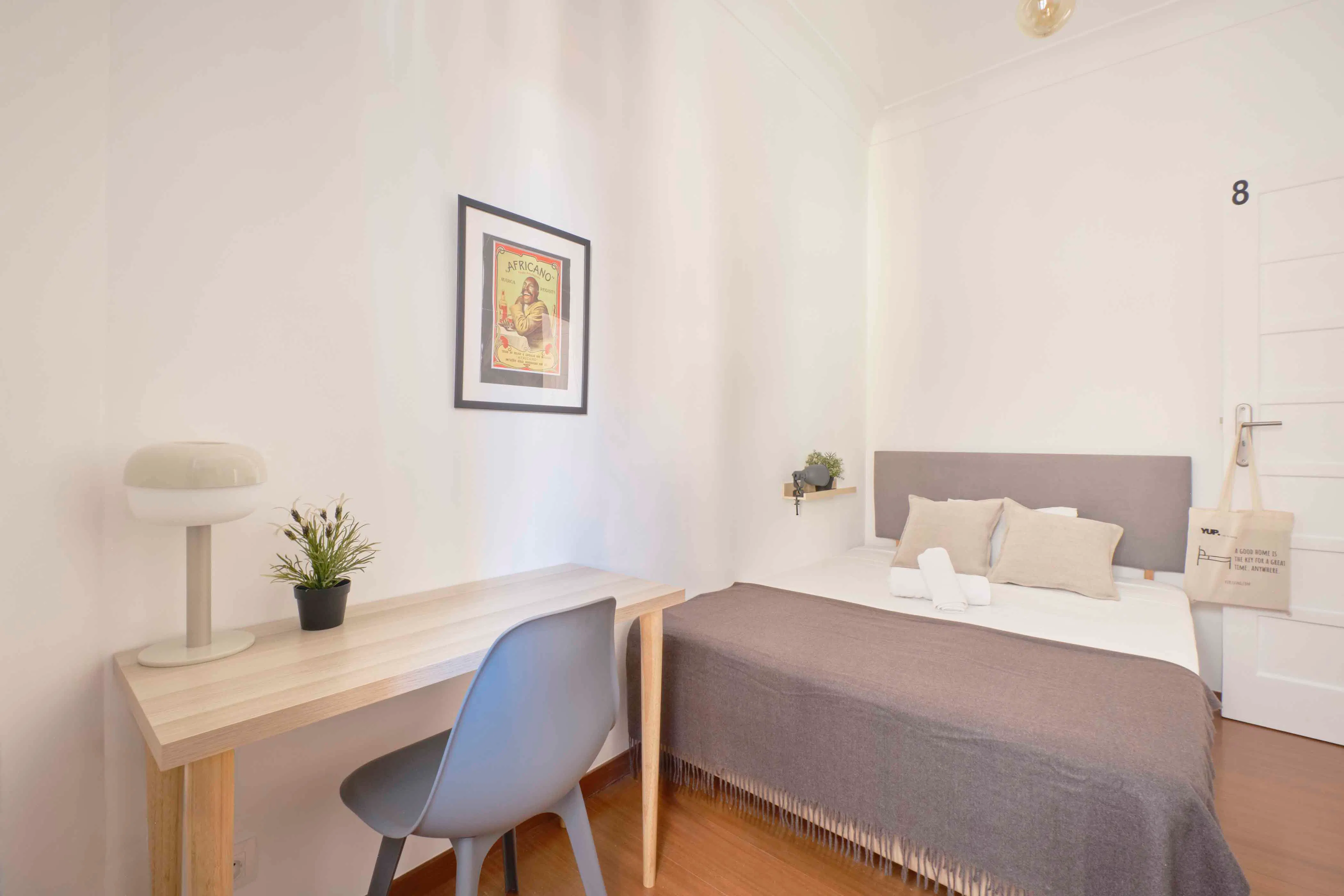🏡 Cozy Room in a T8 Apartment Experience comfort and tranquility in this beautifully designed bedroom, perfect for students and professionals alike. The room's bright interiors create a warm and inviting atmosphere, making it a wonderful place to relax and unwind. Room Features: - Spacious Closet: Plenty of storage space for all your belongings. - Personal Desk: Ideal for reading, studying, or working in peace. - Weekly cleaning is included to ensure a tidy and comfortable living space. - The bathroom is shared among all the rooms in the apartment. Provided Items: - Pillow and Pillow Protector - Duvet and Mattress Protector Location: - Supermarket: Just a 1-minute walk away for all your daily needs. - Metro Station: Conveniently located a 5-minute walk from the property, making commuting a breeze. IMPORTANT NOTES: 1. We provide only 1 pillow per person. 2. Bedspreads, computers, decorative pillows, tote bags, clothing items, etc., are purely for illustrative and decorative purposes during the photo sessions and, for this reason, will not be provided or made available to any guest during their stay. 3. Check-in is available between 3:00 PM and 10:00 PM (a €25 fee applies for check-ins after 10:00 PM). Only one set of keys will be provided. 4. Check-out must be completed by 11:00 AM. At departure, please leave the keys on the desk in your room. 5. Guests are responsible for the safe use and handling of the keys during their stay. Please avoid leaving keys in the lock or mailbox. In case of lost keys, damage to keys/locks or the need for technical assistance to access the property, guests will be responsible for any related costs. A penalty will be applied for lost keys. 6. Smoking is strictly prohibited in all areas of the apartment, including bedrooms, shared spaces and any balconies. 7. Guests may be sharing the apartment with students and young professionals aged between 20 and 30 years old. By confirming your reservation, you agree to these terms. For any questions, please don’t hesitate to contact us. Please note that HousingAnywhere is an online booking platform, so exchanging contact details and scheduling viewings is not possible. To reserve this accommodation, send a booking request or a message with your age and occupation. I look forward to hearing from you...
