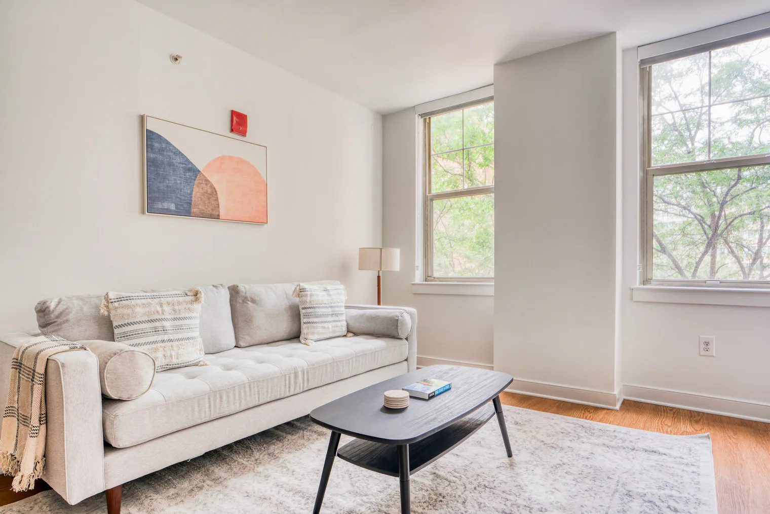 Please, note that the minimum stay for this accommodation is 33 days. You’ll love this cozy Downtown furnished two bedroom apartment with its modern decor, fully equipped kitchen, and lovely living room. Ideally located, you’re close to all the best that Washington, D.C. has to offer! (ID #WDC1119) Designed with you in mind Thoughtfully designed with bespoke finishes, modern furnishings, and a fully equipped kitchen, you’ll enjoy that “I’m home” feeling with this apartment. Whether you’re lounging in your cozy living room streaming the latest and greatest entertainment on the smart TV or premium wireless speaker, or getting some well-earned rest on the superior quality mattress with fully stocked linens, you’ll fall in love with everything this Downtown apartment has to offer. This apartment also offers in-apartment laundry. Sleeping arrangements Queen Bed, 63in/160cm Queen Bed, 63in/160cm Amenities Building amenities unique to this two bedroom apartment include an on-site: - BBQ Area - Doorman - Dryer - Elevator - Game room - Washing machine - Lounge - Parking - Pets allowed Arrival and ongoing support Full Maintenance and Technical Support / cleaning requests at a click of a button. Ideally Located This furnished apartment is located in Downtown DC and provides easy access to many of DC's most vibrant and bustling neighborhoods. This luxury rental is located a short walk away from Thomas Circle and Logan Circle, and is easily accessible by the McPherson Square Metro Station. Take a stroll through CityCenterDC, one of downtown's hottest new destinations, and enjoy some of the amazing dining options on these lovely blocks of restaurants and ritzy shops and boutiques. Or take a tour of the many nearby museums, including the National Portrait Gallery. Other things to note Building amenities may have an extra cost. This apartment has flexible lease options, allowing you to book it for one month, a year, or more. Pets are welcome, though weight limits and breed restrictions apply and may incur fees. Parking is offered based on availability and is subject to a fee. Completion of the Background check via a link is mandatory after the booking confirmation. All occupants, and anyone booking on an occupant's behalf, will be subject to a background check, which will include a criminal and credit history to the extent permitted by law. United States citizens, U.S. permanent residents, and non U.S. citizens with work visas must provide a social security number to complete the background check. Should guests not meet requirements or decide not to complete these screenings, the reservation must be cancelled by guests. In case of students, proof of University enrollment and a parents screening are mandatory for the confirmation of a booking...
