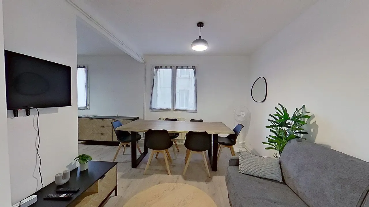 Notre agence vous présente ce T4 de 63,75 m2 situé au 13 Rue Jean Joseph Génissieu à Valence. Ce bien inclut également une cave ainsi qu'un garage fermé. 🏠 LE LOGEMENT Le logement s’ouvre sur une agréable pièce de vie baignée de lumière naturelle, dotée d’un sol en parquet clair qui apporte une atmosphère chaleureuse et contemporaine. L’espace salon est aménagé avec un canapé gris, une table basse ronde en bois clair et une télévision fixée au mur, formant un ensemble fonctionnel et convivial. L’espace salle à manger accueille une grande table en bois massif entourée de six chaises assorties, idéale pour les repas et les moments partagés. La cuisine ouverte s’intègre harmonieusement à la pièce de vie. Elle est équipée de meubles noirs au design sobre et moderne, d’un réfrigérateur-congélateur, d’un four encastré, d’un micro-ondes, d’une plaque de cuisson et d’une machine à café. Le plan de travail en bois clair et les nombreux rangements hauts et bas offrent un espace pratique et bien organisé. La salle d’eau présente une douche vitrée aux finitions modernes, un meuble vasque avec rangements et un miroir lumineux. Les toilettes sont séparées, apportant un confort appréciable au quotidien. Le logement dispose de trois chambres distinctes, toutes aménagées avec un lit double. Chaque chambre bénéficie de rangements grâce à une commode ou un portant, ainsi que d’un mobilier complémentaire selon la configuration. Les sols en parquet clair et les tons neutres créent une ambiance calme et reposante, propice à l’installation immédiate. 📍 LE QUARTIER Situé dans un secteur calme et pratique de Valence, ce logement bénéficie d’une bonne desserte en transports en commun. La ligne de bus C5 est accessible au pied de l’immeuble et permet de rejoindre facilement le centre-ville. La ligne 08 se trouve également à proximité et facilite les déplacements vers les autres quartiers. Les commerces de proximité et les commodités du quotidien sont accessibles à pied, offrant un cadre de vie fonctionnel et agréable Les informations sur les risques auxquels ce bien est exposé sont disponibles sur le site Géorisques : (hidden) Montant estimé des dépenses annuelles d'énergie pour un usage standard : 1494 € par an. Prix moyens des énergies indexés sur l'année 2021 (abonnements compris...