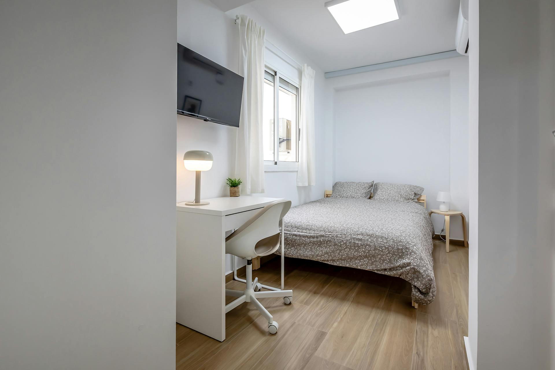 Cozy Room in a 4-Bedroom Apartment Discover comfort and convenience in this fully furnished 8m2 room located on Calle Planas, right in the heart of Monteolivet and just a short walk from trendy Ruzafa—known for its vibrant streets, great cafés, and lively atmosphere. The room comes equipped with a comfortable double bed, a spacious wardrobe, and a desk with chair, making it ideal for studying or working from home. The apartment offers individual room heating and cooling, high-speed Wi-Fi, and a fully equipped kitchen with everything you need for everyday cooking. Perfect for unwinding or spending time with your housemates. Located in a well-connected neighborhood, you’ll be close to public transport, the city center, universities, and just a short bike ride from the beach. Perfect for students and young professionals looking for a cozy, well-equipped home in one of Valencia’s most desirable areas...