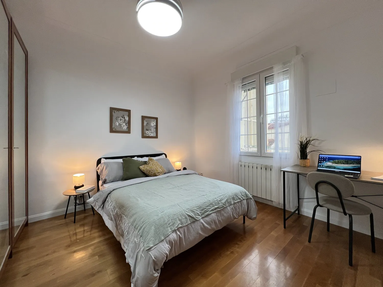 Habitación doble con medida de 13.5mtrs2. Acepta Parejas. Cama matrimonial de 135 cm. Smart TV 32”. Armario. Espacio de trabajo, con escritorio y silla. Ventana con vistas al exterior. Cerradura en la habitación. Piso de seis habitaciones y dos baños, ubicado en la cuarta planta (con ascensor). La cocina está equipada con todos los electrodomésticos, utensilios y menaje necesarios. Los baños cuentan con espacio de almacenaje para tus enseres personales. Condiciones de Alquiler: DNI, NIE o Pasaporte.Mes corriente.Depósito de seguridad reembolsable (ciertas condiciones aplican). Se solicita un pago único al momento de la entrada, para gastos de gestión y mantenimiento (este importe puede variar según la temporada). Las habitaciones no incluyen: Ropa de cama, mantas o toallas. Check in presencial en Oficina: Horario: 14:30 - 18:30 de lunes a viernes en la oficina del propietario con cita previa.Check-in tardío: 30 € fuera del horario indicado hasta las 21:00. Normas: No se permiten mascotas y está prohibido fumar. Los límites de edad establecidos para el alquiler son entre los 18 y 39 años. Transporte: A 3 minutos caminando tienes el Metro Callao, y el metro de Gran Via (Línea 5).Estás en pleno centro de Madrid por lo tanto cuentas con distintas paradas de autobuses y otras paradas de metro para tu movilidad....