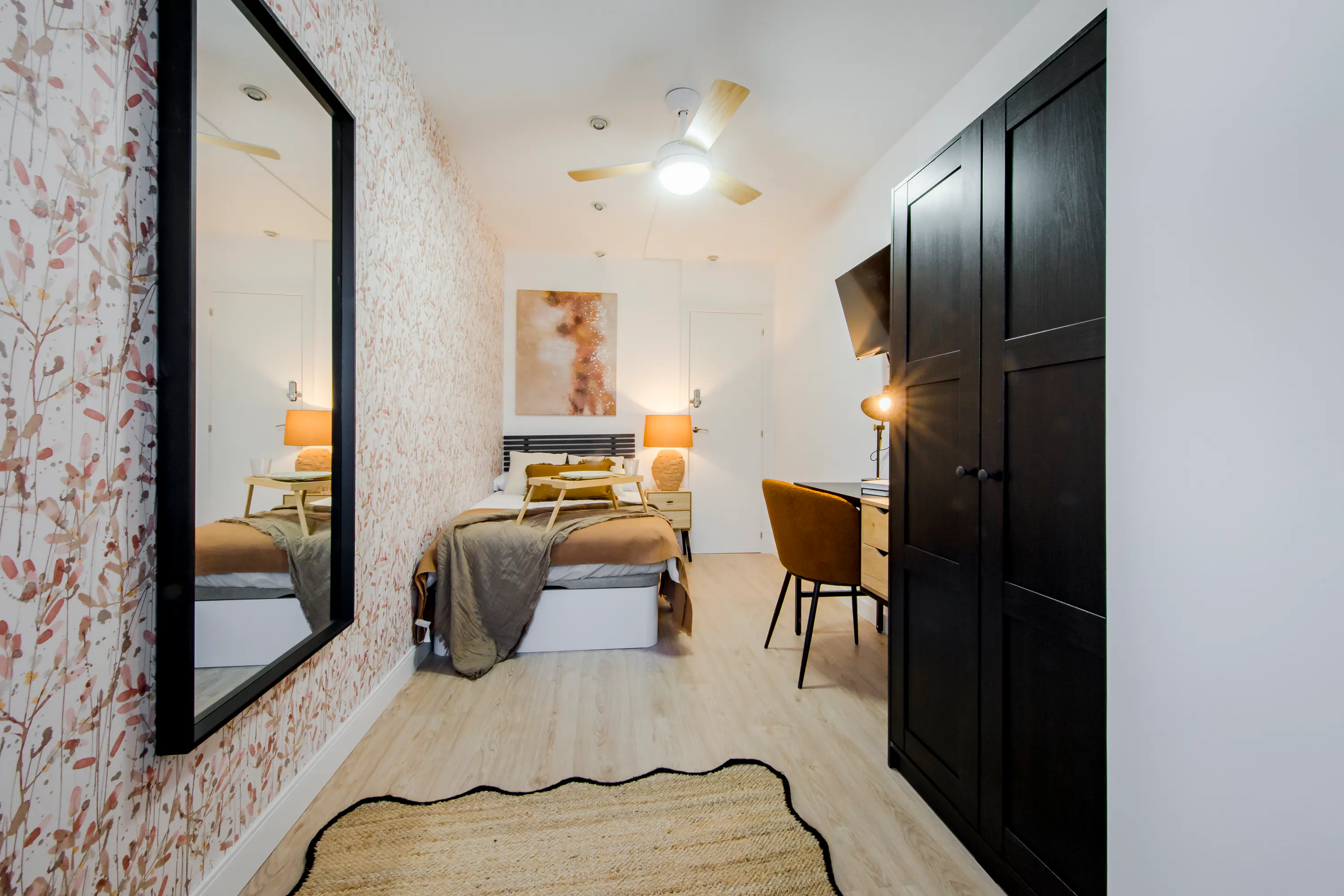 This bedroom comes with: ✔ Exterior window 🛏 Type of bed: 105x190 cm We present you a beautiful room in an apartment located at Paseo de la Castellana 114, Madrid. The property has been recently updated, offering a fresh and comfortable space ideal for those looking to live in one of the best areas of Madrid. The apartment consists of 2 full bathrooms, a fully equipped kitchen (fridge, oven, microwave, ceramic hob, utensils), and 6 bedrooms in total. The room features a bed with storage base, mirror, wardrobe, desk, and a Smart TV, so you can enjoy your favourite channels and streaming platforms. The price includes: Maintenance technician Customer service Kitchen utensils Lockable door High-quality room standards Flexibility of contracts 📍 Excellent location: Located on the prestigious Paseo de la Castellana, you will enjoy outstanding public transport connections, with nearby metro stations and several bus lines providing quick access to Nuevos Ministerios, Plaza de Castilla, the city centre, and other key areas of Madrid. Supermarkets, shops, cafés, restaurants, and all essential services are just a short walk away, in one of the city’s most dynamic and well-connected neighbourhoods. We are waiting for you! 🔔 Administration fee must be paid in cash (for other payment methods, please contact us) 🔔 Profile: 18–35 years (older ages may be accepted on a case-by-case basis) 🔔 Weekly cleaning of common areas is included in the price...