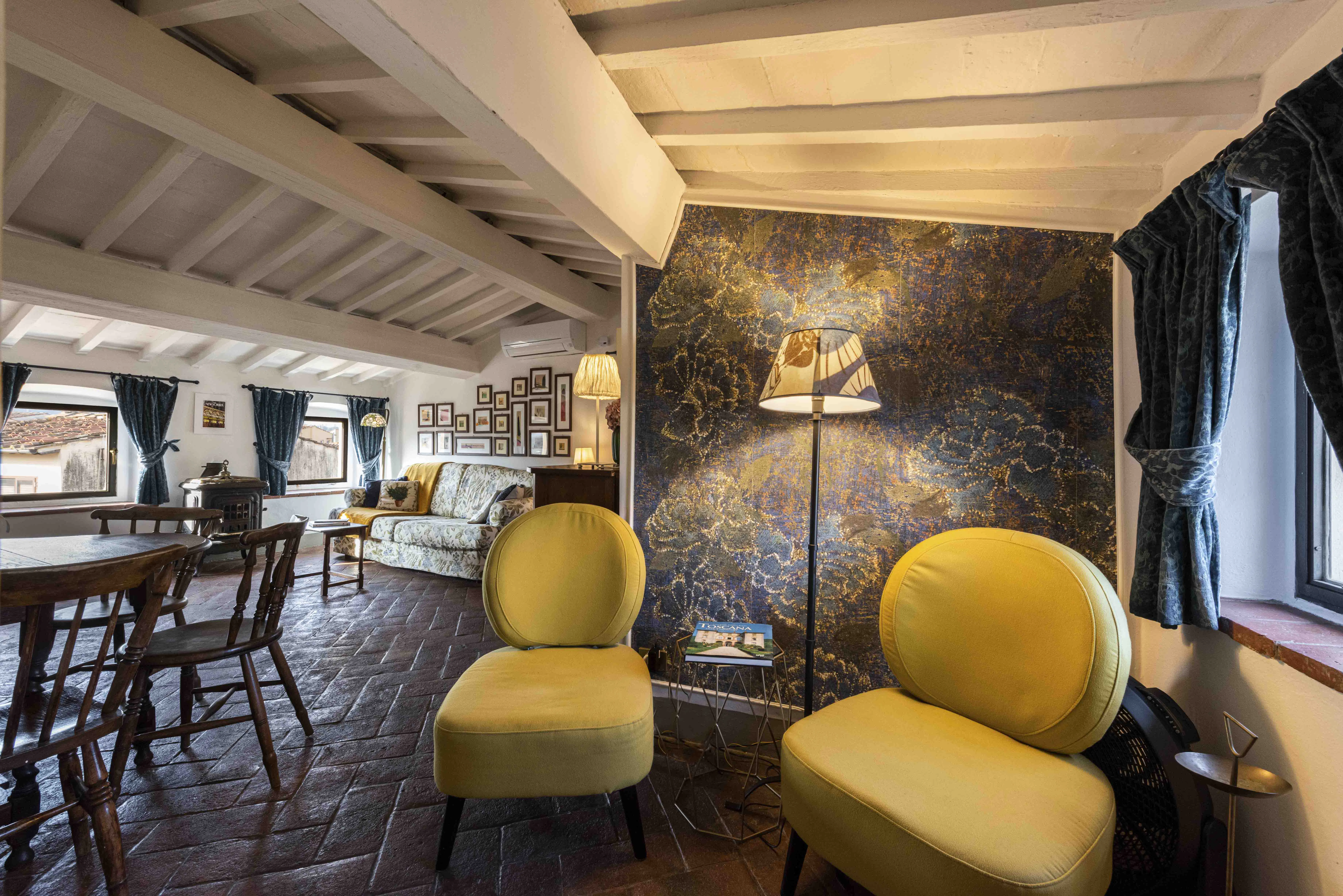 In the most authentic heart of Florence, in Sdrucciolo de' Pitti, in the charming Santo Spirito neighborhood, we offer a charming apartment for rent, just steps from Palazzo Pitti, the Boboli Gardens, and the Basilica of Santo Spirito. A simply privileged location, ideal for those who want to experience the city while immersing themselves in its history, amidst artisan workshops, traditional restaurants, and lively piazzas. The apartment is located on the seventh floor of a typical building in Florence's historic center. It has no elevator, a common feature of historic buildings in the area, and is amply compensated by the atmosphere and view you enjoy upon arrival. The interiors captivate from first glance: the apartment is beautiful, welcoming, and authentically Florentine, with original terracotta floors, exposed wood-beamed ceilings, and exquisite wallpaper that lends personality and warmth to every room. The furnishings are tastefully curated and embellished with refined antiques, creating an elegant and relaxing atmosphere...