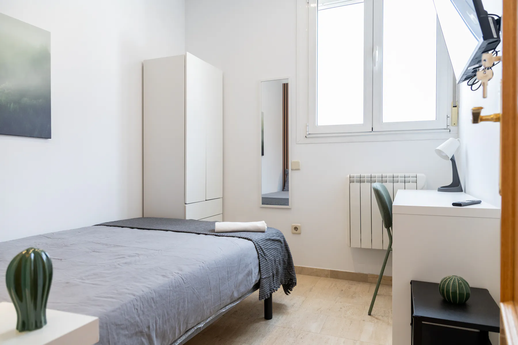 Perfect for those looking for a modern, functional, and well-connected living space, this apartment offers comfort and practicality in a welcoming shared environment. The property features four spacious and bright bedrooms, each equipped with its own TV, ensuring privacy and convenience for every tenant. Each bedroom has access to a large shared terrace, creating a pleasant extension of the living space and offering the perfect spot to relax or enjoy some fresh air. The terrace is common to all bedrooms, making it an ideal area for unwinding outdoors. The apartment includes one full bathroom with good ventilation, designed to ensure everyday comfort. The fully equipped kitchen comes with all essential appliances and is furnished in a simple, modern style, making it both practical and inviting. Cleaning of the common areas is included, helping maintain a tidy and pleasant shared space. Monthly expenses are €50 per person. Located in a quiet and well-connected area, the apartment is just a few minutes from Nueva Numancia station, offering easy access to Madrid Atocha railway station and Madrid city center. In the surrounding area, you will find supermarkets, bars, gyms, and green spaces, providing everything you need within walking distance. The security deposit and administrative fees must be paid by bank transfer. Bank details will be provided once the booking is confirmed. A comfortable and well-connected apartment, ready to move in. Contact us for more information or to book your room...