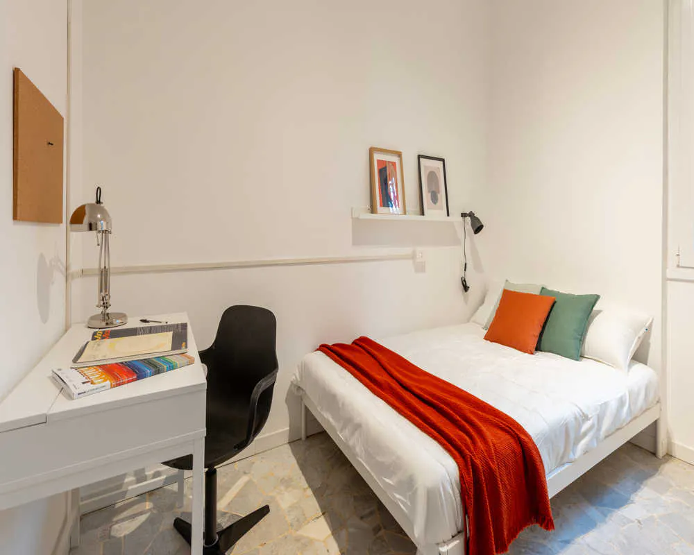 Single room in a shared apartment, composed by 4 bedrooms and 1 bathroom. Of about 11 sqm with a single bed and a work station. With wifi, bike parking, concierge services, dishwasher, washing machine. Energy class: E, IPE 120.97 Kwh/Sqm year. Current tenants: Please be aware that HousingAnywhere is an online booking platform. Therefore exchanging contact details and offering viewings is not possible. If you would like to reserve this accommodation, send me a booking request or a message and please mention your age and occupation. I look forward to talking to you! CONTRACT Please, note that to all our listings we apply fortnightly contracts. This means that If you check-in during the first half of the month, you will be charged for the full month. If you check-in during the second half of the month, you will only be charged for the second half. The second half of the month starts on the 16th. If you check-out during the first half of the month, you will only pay until the 15th of that month. If you check-out during the second half of the month, you will be charged the full month....