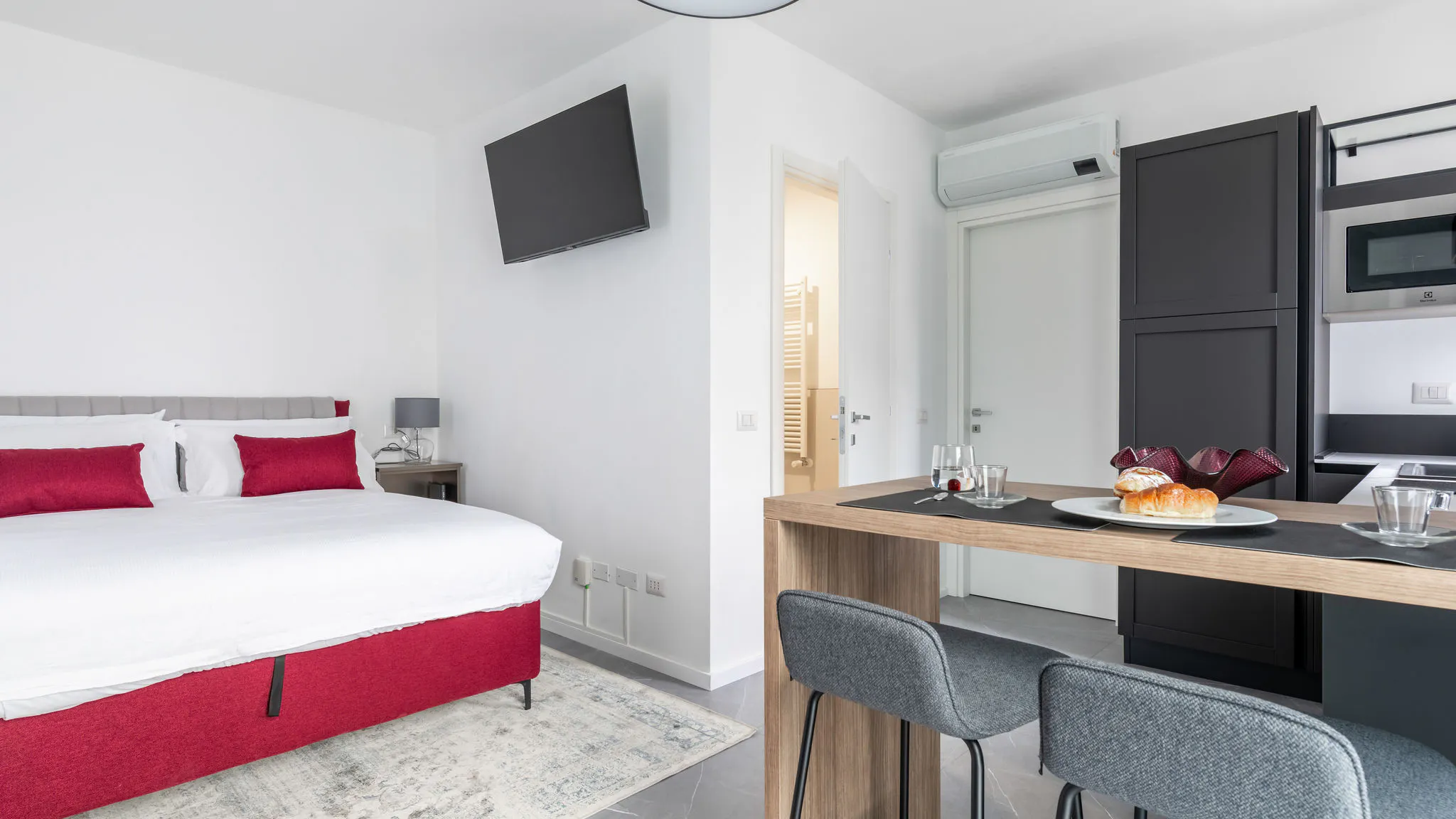 Tartini 28C is a finely restored studio apartment located on the first floor without elevator of a courtyard building in Via Tartini 28, in the Dergano district of Milan. The space is well organized and functional, ideal for ensuring comfort and convenience during short stays. The apartment is cozy and bright. The living area houses a comfortable double bed, a Smart TV and a large modern kitchen with a practical island, perfect for eating meals in an informal and convivial way. The island replaces the classic dining table and offers a practical space even for those who want to work or study in peace. The kitchen is equipped with all necessary appliances, including a dishwasher, offering maximum convenience to all guests. The bathroom is modern and well finished, with attention to detail to ensure a pleasant and carefree stay. Fast Wi-Fi, air conditioning, independent heating and a washing machine are also available. Via Tartini is located in the heart of Dergano, a district of Milan that in recent years has been able to maintain its authenticity while enriching itself with a lively contemporary atmosphere. Walking through its streets, you can still breathe the spirit of the most genuine Milan, with historic shops, neighborhood cafés and new cultural and creative realities that are giving new energy to the area. The location is particularly convenient thanks to the proximity to the M3 Dergano metro stop, which allows you to reach the city center, the Duomo and the Central Station in a few minutes. A precious advantage both for those who visit Milan for work and for those who want to discover its tourist attractions without giving up the tranquility of a residential area. The neighborhood also offers numerous restaurants, supermarkets and green spaces for a walk or a moment of relaxation. The presence of creative ateliers and modern venues makes Dergano a meeting point between tradition and innovation, ideal for those looking for an authentic experience that is at the same time connected to the dynamic rhythm of the city. RENTAL CONDITION: Rent includes all utilities based on normal use; if you exceed with the usage of gas and electricity, the extras will be deducted from your deposit. Details will be specified in the rental agreement; Internet, wi-fi, water, building expenses and contract registration costs are included in the rental price; Early termination of the contract: after the minimum required stay of one month, you can terminate the contract earlier and without penalties by informing us 21 days before your expected move-out date; We apply a daily contract on 30 days: we calculate the rent in proportion to the number of days of your stay: e.g. December is calculated on 31 days, February on 28 etc etc...; RENTAL AGREEMENT: As per Italian Law, it is mandatory to apply for a valid Italian Tax Code in order to sign the rental agreement. You can apply for one by contacting your local Consulate, or by going to the Agenzia delle Entrate no later than one-week prior check-in. If you can't get one on time a charge will be applied. The rental agreement must be signed prior check-in. Failure to do so will result in the impossibility to enter the apartment. PAYMENTS: In order to complete the booking the following payments must be completed, at least 2 weeks before the check-in date: - the deposit, that we will give you back at the end of your stay within 30 business days after the check-out date; - one-time initial and final cleaning fee (starting from €175) depending on the size of the flat. - for all apartments located in Rome, the cost of the city tax is required at check-in. This is equal to €3,50 per person per night. MINIMUM STAY MILAN ACCOMMODATION 60 nights minimum stay is required for the reservations with check- in between March 18th 2026 and April 28th 2026 included. For bookings with check in within those dates, the first two months of your booking must be paid in advance and won't be refundable. The check out between 17th April and 26th April 2026 included is not allowed...