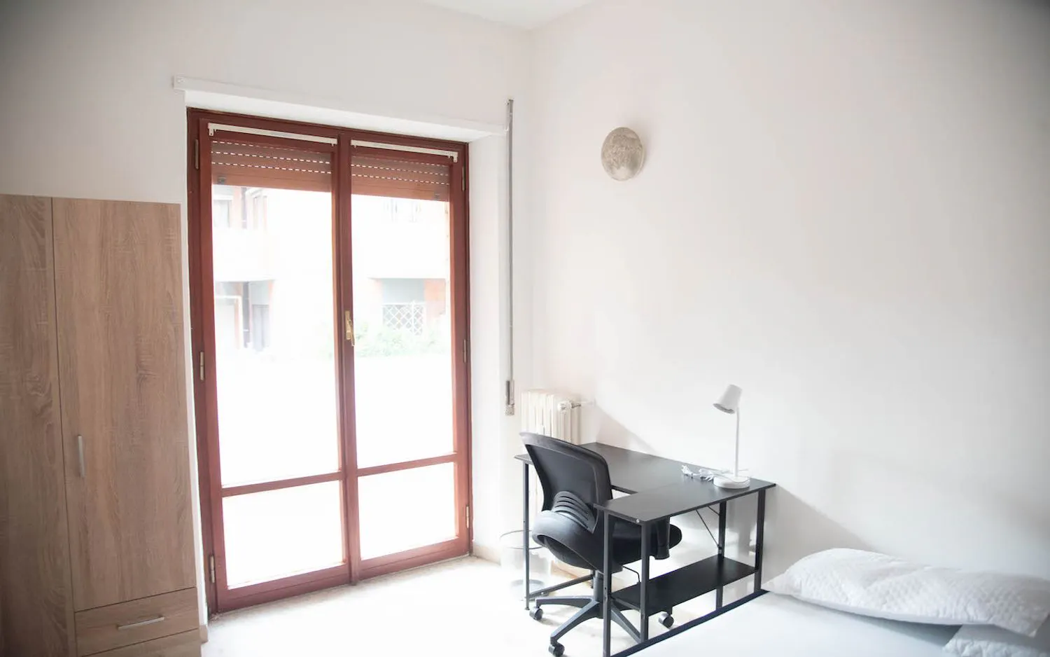 Single room with one and half bed size, private fridge and balcony for rent in a 4 (hidden)/young workers apartment with 2 bathrooms (1 private) in Eur district, comfortable to reach simply Roma Tre University. The apartment is on third floor with elevator, it is 10 minutes walking far from Laurentina metro station and has supermarkets, bars and pharmacies in the nearby. The one-time administration fee (different from the booking fee of the platform) is NOT REFUNDABLE in case of cancellation by the tenant. The fee covers different activities done before your arrival, at your arrival, and during your stay. These activities are: - Maintenance before arrival - Drafting the contract - Assisted check in - Keys at hand at check in - Delivery of a ready-to-use room - Monthly apartment cleaning A payment request will be sent to you after the booking is confirmed. IMPORTANT It's not possible to check in/out outside of the schedule below or during a holiday (example: Christmas, New Year, Ester, Sundays, etc.). No exceptions will be made. CHECK IN / OUT TIME: Monday – Friday: 9.30 - 18.00 (by appointment) Saturday: 10.30 - 12.00 with an extra cost of 50 euros (by appointment and based on our availability). Please be aware that HousingAnywhere is an online booking platform. Therefore exchanging contact details and offering viewings is not possible. If you would like to reserve this accommodation, send me a booking request or a message and please mention your age and occupation. I look forward to meeting you!...