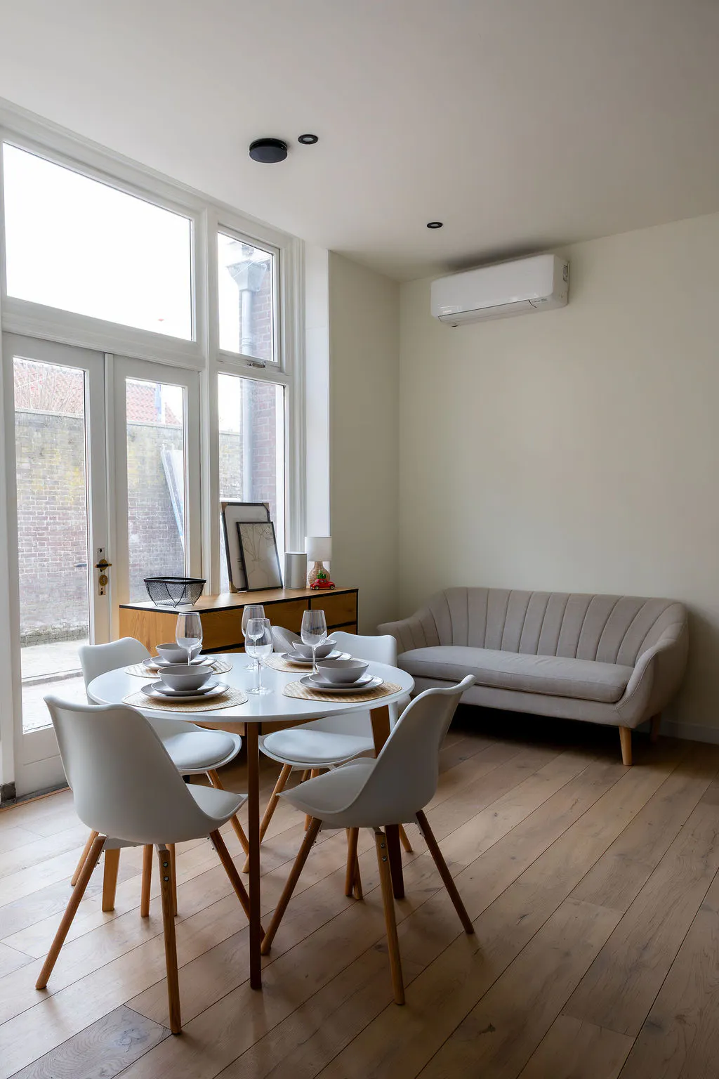 SHORT-STAY 2-BEDROOM APARTMENT IN HISTORIC CANAL BUILDING – DELFT CITY CENTRE Located in the heart of Delft’s historic city centre, this beautifully renovated and fully furnished short-stay apartment of approximately 60 m2 is part of a monumental canal-side property. The apartment combines classic charm with modern luxury and is ready to move in. Layout: The entrance hall leads into a bright living room featuring large windows that provide ample natural light.. The semi-open luxury kitchen comes fully equipped with high-end built-in appliances, including an induction hob, extractor fan, dishwasher, fridge, freezer, and combi oven/microwave. There are two bedrooms. The apartment also features a modern bathroom with vanity unit and walk-in shower. The apartment is finished with a high-quality floor, underfloor heating, and air conditioning. Key features: - Approx. 60 m2 of living space - Fully furnished - Maximum rental period of 6 months (short stay) - Located in a historic building along the canal - available per 20th of Januari - Further details available on reques...