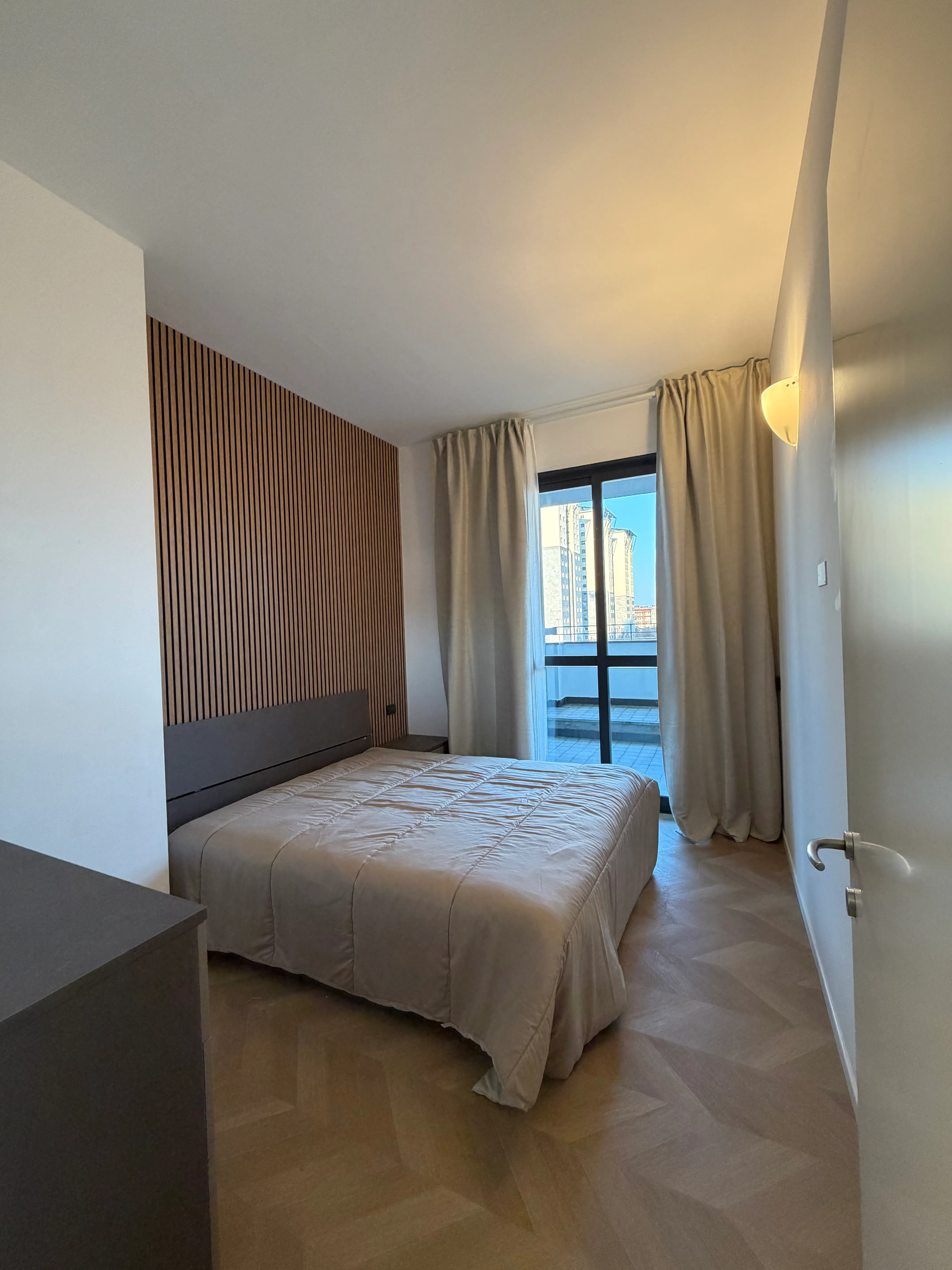 Splendido Bilocale appena ristrutturato, vicino a tutti i negozi di prima necessità, al piano 3. composto da ingresso, living con cucina a vista completa di tutto, smart tv Led, disimpegno, stanza matrimoniale finemente arredata, grande bagno completo, terrazzo al piano di circa 20 mq godibile e illuminato, parcheggio auto all'interno privato tramite garage. Vicino alla fermata del tram n.4 e a 350 metri dalla fermata della metropolitana M4 Frattini (metro blu), che porta in centro storico in 8 fermate e collega l'aeroporto di Linate (cityairport)...