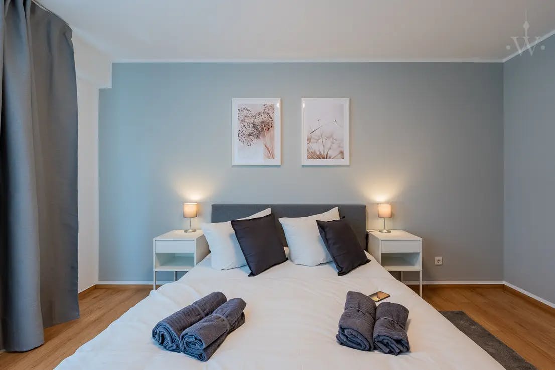 💢💢💢 Furnished 2-room apartment in Tegel with water view—ideal for home office Bright and spacious 2 - room apartment on the ground floor of a well-kept and modernized property at Tegeler Hafen. Notice regarding building work: In the coming weeks, scaffolding will be erected at the building due to modernization work on the facade and roof. Occasionally, workers may be on site. Exact dates are not yet fixed and may change. equipement The following highlights await you: - 1 bedroom - Closets - Desk - Fully equipped open kitchen (electrical appliances, cutlery, crockery etc. included) - Dining area for up to 4 people - Bed linen and towels - Bathroom with bathtub - Washing machine - Living room comfort with sofa and Smart TV - Balcony with seating - Parking space optional and subject to availability - Electricity included - Internet with 100mBit/s, optionally expandable to 250m Position The apartment is located opposite the Humboldt Library. Subway station Alt-Tegel is only about 250 m, S-Bahn station Tegel 850 m away. To the A111 junction Waidmannsluster Damm it is 750 m. In the surrounding area there are many shopping facilities as well as doctors and care facilities within walking distance. Lake Tegel is only a few minutes' walk away. 💢💢�...