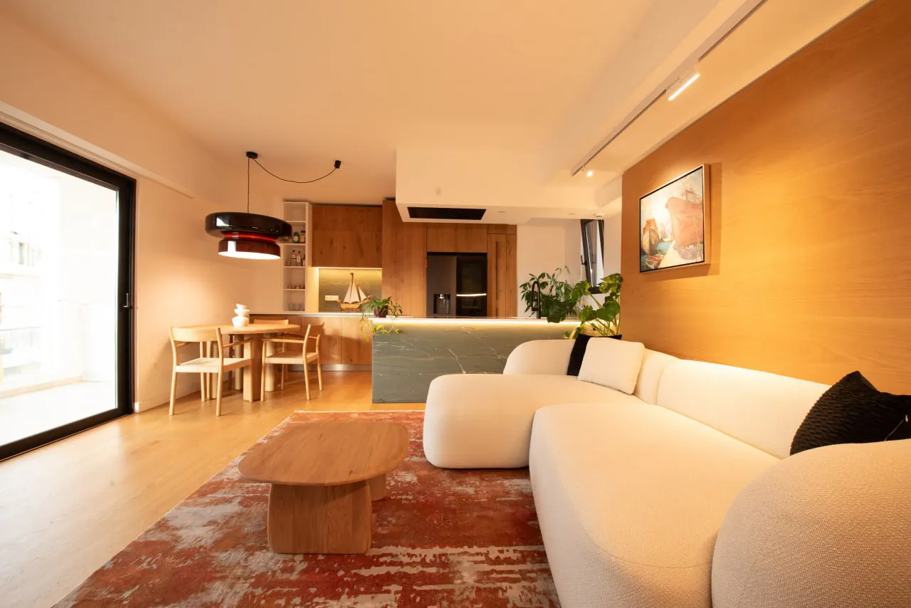 Designer Apartment in Panormou A fully furnished, move-in-ready apartment in one of Athens' most liveable neighbourhoods. Brand new 2024 construction with premium finishes throughout. Walk out the door and reach Panormou metro in three minutes. THE SPACE 92 square metres on the sixth floor with elevator access. It's the only apartment on the floor, so no shared walls and no hallway neighbours. Three private rooms (bedroom, office, and gaming room), one and a half bathrooms, and an open-plan kitchen and living area. Floor-to-ceiling windows overlook a tree-lined square. The living room centres on a Yamaha U1 upright piano, a Japanese-made instrument with a rich, warm tone. Two original paintings by Giorgos Mitsis, an Albanian-Greek artist working in impressionist style, anchor the walls. Four handmade rugs from Biokarpet define the spaces. FURNISHINGS Every piece has been selected from Kave Home, a Spanish designer furniture brand. Two sofas in the living area, a solid wood dining table with chairs, coffee tables, and balcony furniture. The main bedroom has a quality mattress from Istikbal. You'll sleep well. Quality bed linens, towels, and handmade ceramics included. Bring your suitcase, nothing more. The kitchen is fully equipped: Miele induction hob, Miele oven, Miele dishwasher, espresso machine, and everything you need to cook properly. A Miele washer-dryer handles laundry. CLIMATE & UTILITIES Underfloor heating powered by a heat pump. Efficient, silent, and even. Powerful split-unit air conditioning in every room for the Athens summer. Continuous hot water via an independent boiler, no waiting and no solar dependency. LOCATION Panormou sits on the blue metro line with direct service to the airport and easy transfers across the city. The neighbourhood is residential, safe, and walkable: supermarkets, bakeries, cafés, pharmacies, and tavernas within a three-minute radius. Twenty minutes from the Acropolis, fifteen from Kolonaki, and a twenty-minute walk to Lycabettus Hill for morning runs. A dedicated parking spot is included, a genuine rarity in central Athens. There's a Tesla charger for electric vehicles. There's also a 2m2 storage room on the ground floor for bikes or luggage. Day trips to the coast, the mountains, or the islands become effortless. IDEAL FOR Professionals relocating for a summer project. Academics on research sabbatical. Remote workers seeking a European base. Couples wanting to experience Athens without compromising on quality. Musicians who'd welcome a real piano at home....