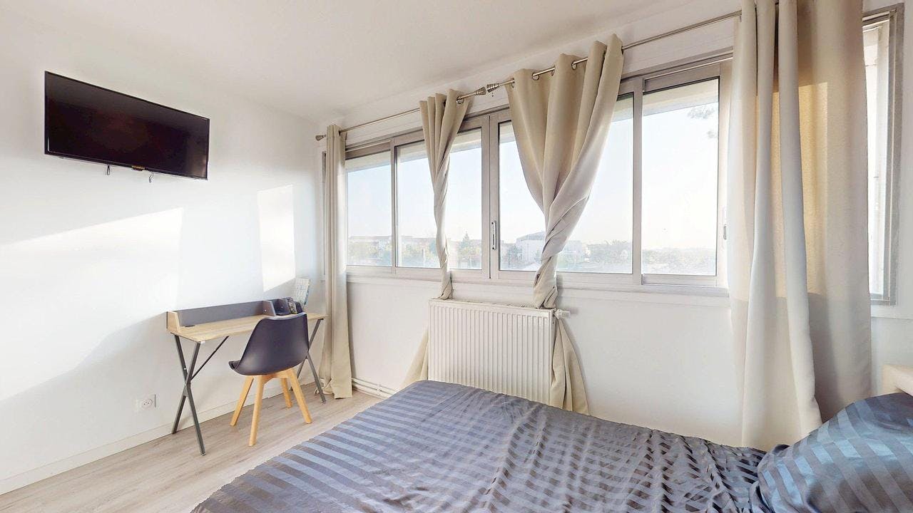 Notre agence vous propose cette colocation de 90 m2, située dans la commune de Toulouse au 5 Allée Du Forez. 🏠 APPARTEMENT 🏠 Cette colocation s'ouvre sur une grande pièce de vie lumineuse aménagée d'un canapé d'angle, d'une table basse, d'un meuble TV avec télévision ainsi que d'une table avec cinq chaises, idéal pour partager des repas entre colocataires. La cuisine ouverte est équipée d'un réfrigérateur congélateur, d'un lave-vaisselle, d'une machine à café, d'un évier avec égouttoir, d'un four, de plaques de cuisson avec une hotte, d'un air-fryer, d'une machine à laver, d'un sèche-linge, d'un grille-pain, d'une bouilloire ainsi que de nombreux rangements. L'appartement accueille deux salles d'eau dont une avec un WC, et une toilette séparée. 🛏️ LA CHAMBRE 🛏️ Cette chambre dispose d'un lit double, d'une table de chevet avec une lampe, d'un bureau avec une chaise, d'une armoire et d'une télévision. 📍 LOCALISATION 📍 Située dans un quartier calme et résidentiel, proche de plusieurs commodités : À 2 minutes à pied de l'arrêt de tram Ancely, desservi par la ligne T1 À 21 minutes en transport en commun ou à 5 minutes en voiture du Carrefour Toulouse Purpan À 29 minutes en transport en commun du centre-ville de Toulouse (Place du Capitole) À 29 minutes en transport en commun de l'Université Toulouse - Jean Jaurès À 34 minutes en transport en commun de l'aéroport Toulouse-Blagnac Bail individuel à la chambre. Pas de caution solidaire. Chacun est libre de partir quand il veut sans se soucier des autres colocs, dès le moment où il respecte un mois de préavis. Éligible aux APL. Les informations sur les risques auxquels ce bien est exposé sont disponibles sur le site Géorisques : (hidden) Montant estimé des dépenses annuelles d'énergie pour un usage standard : 1408 € par an. Prix moyens des énergies indexés sur l'année 2021,2022,2023 (abonnements compris...