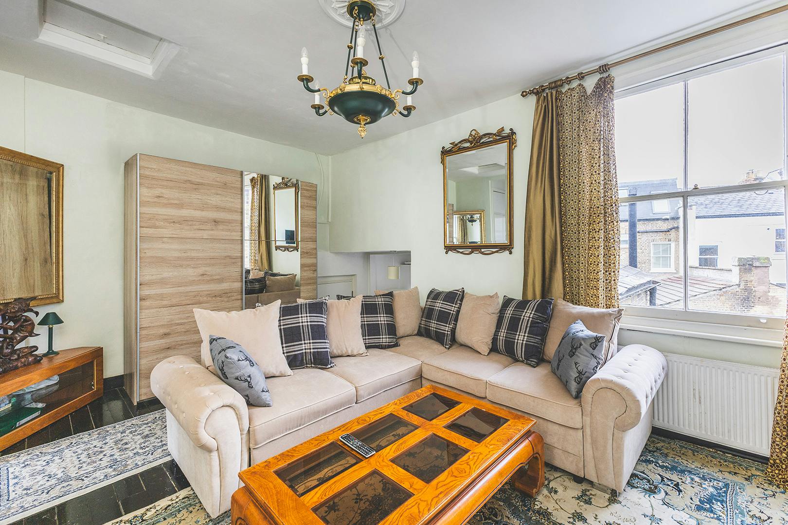 This inviting Fulham apartment offers classic London charm with warm, traditional décor and a comfortable, homely feel. Designed for up to four guests, it blends characterful interiors with practical modern touches, creating a welcoming base in one of West London’s most desirable neighbourhoods. The flat features one spacious bedroom with a king sized bed and one bathroom with a shower over bath. Located on the ground floor, the property includes internal steps leading from the living room down to the kitchen. The living area also includes an L shaped sofa that converts into a sofa bed, comfortably accommodating additional guests. The bright living room is styled with soft neutral tones, rich curtains, elegant chandeliers and ornate mirrors, giving the space a timeless and cosy atmosphere. Plush seating, layered cushions and large windows allow natural light to fill the apartment, enhancing its warm character. The dining area opens to comfortably seat up to four guests, making it ideal for relaxed meals at home. The kitchen is well equipped with modern appliances, including a combination washer and dryer, and the property also benefits from a portable air conditioning unit for the warmer summer months. Disclaimer: Please note that the property includes internal stairs between the living room and kitchen and is not suitable for children below twelve years of age. We offer custom pricing for any duration, with rates varying based on exact move-in and move-out dates. Rates start from 3640...