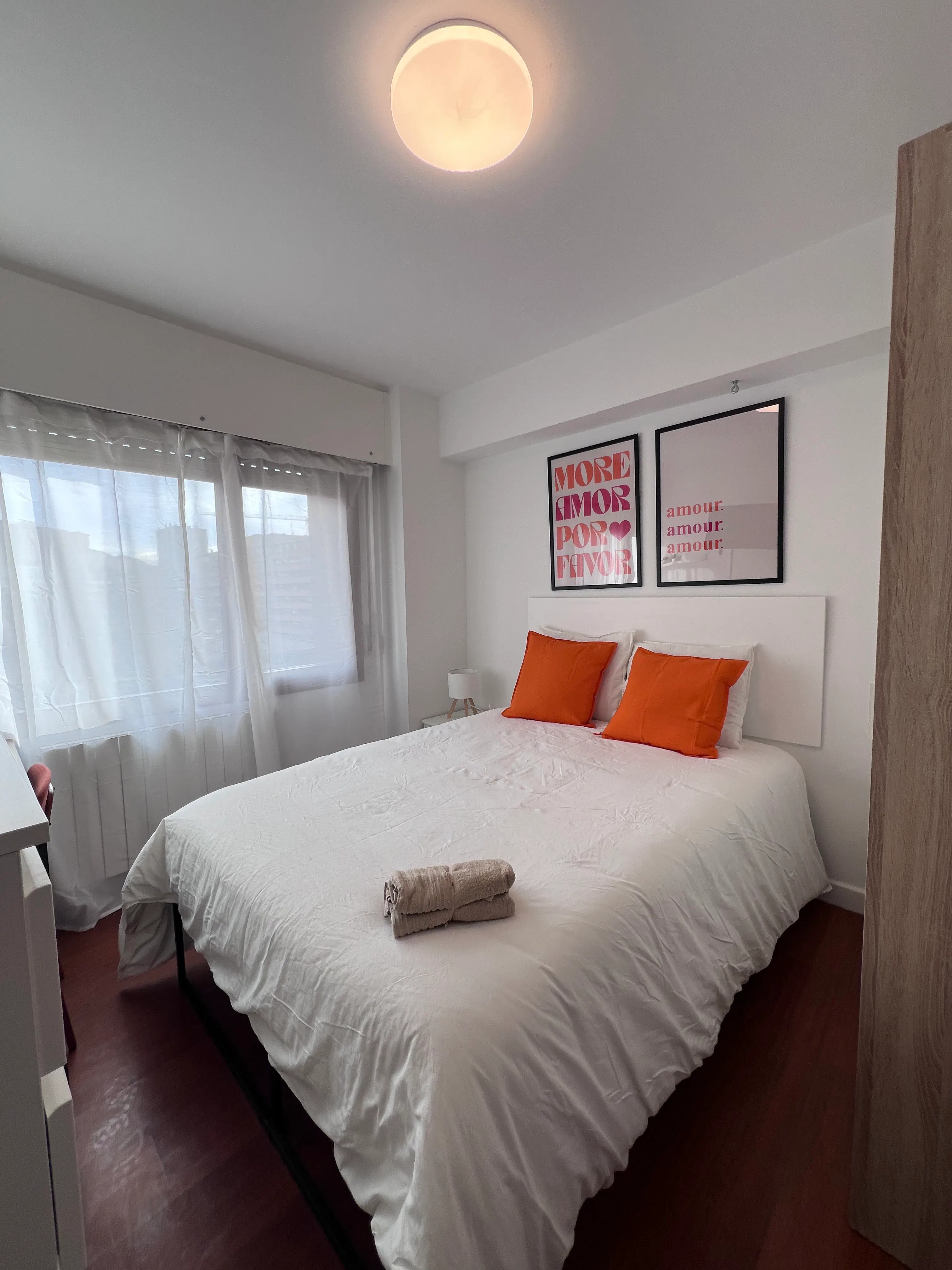Se alquila habitación de 10m2 en la habitación en vivienda compartida. La vivienda se encuentra en el barrio de Txurdinaga a 3 minutos de la boca de metro Línea 3. Se trata de una amplia vivienda con 100 m2 distribuida en 5 habitaciones totalmente equipadas, 2 baños completos y recién reformados así como una cocina totalmente equipada con mobiliario y electrodomésticos nuevos. El ambiente tanto de la casa como de la Comunidad vecinal es muy tranquilo. La habitación es muy luminosa debido a su orientación y altura de la vivienda y está equipada con el siguiente mobiliario: Cama de 135x 190 con mesilla de noche Smart TV 32′′ Armario de gran tamaño. Escritorio individual con silla y flexo Espejo Cerradura privada El alquiler incluye todos los gastos de suministros (agua, luz y calefacción) así como fibra óptica de internet y servicio semanal de limpieza. El edificio se encuentra en muy buen estado con zonas verdes a su alrededor y accesibilidad a cota 0. Hay varios supermercados en la misma calle y todos los servicios muy cercanos (bancos, farmacias, centro de salud, mercado......