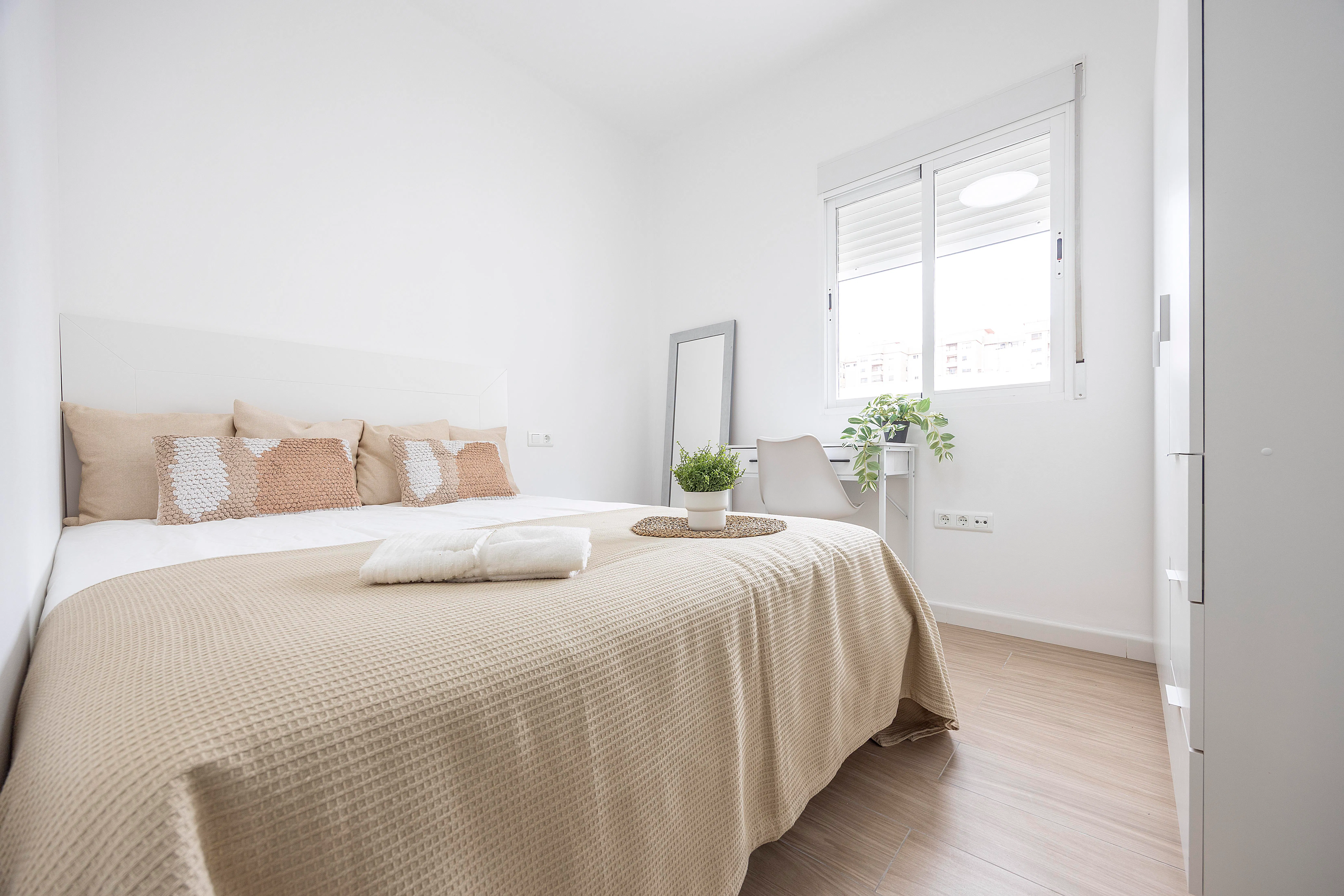 ROOM: Bright room in Amistad neighborhood, one of the best valued places to live if you are student. It's a very good option if you are student or young worker and want to spend some time in the beautiful city of Valencia. It's a totally equipped and furnished bedroom: - Bed 135x190cm - Wardrobe - Desk with chair - Ceiling fan - Window with interior view - Lock for your privacy APARTMENT: The apartment sizes 85m2 and it has 4 bedrooms, 1 common bathroom and 1 private bathroom. Therefore the bathroom is shared with 2 more people. Common areas are enough to spend time with your flatmares, with a equipped with: - gas cooker (it is being replaced by an electric one) - gas heater (it is being replaced by an electric one) - Refrigerator - Oven - Microwave - Washing machine - Tableware NEIGHBORHOOD: Amistat area is one of the greatest area to live in Valencia if you are student! This neighborhood is home to several university buildings and has great transport connections to the city centre, UPV and University of Valencia, and also to the beach! The area is plenty of bars, pubs, discos, specially for students, where you can share time with other international students. EXPENSES: The rental price includes internet and a weekly cleaning of the common areas. The costs of utilities are as follows: -Water: 10€/month -Electricity: 40€/month, if any month the consumption is more than this, the difference will be paid separately. In this case, the expenses are shared equal parts between the tenants. CLEANING SERVICE: We offer for free a cleaning service once per week of common areas. It's a tenant rensponsibility to keep the flat clean, tidy and in good conditions. Our cleaning service is mainly to help you with the cleaning, but it's important to keep everything clean. The cleaning products must be provided by the tenants. You can find a list of the cleaning products needed at the apartment. BED LINEN: For a hygienic reason, we do not provide any bed linen, neither pillow, duvetor duvet cover. CHECK IN AND CHECKOUT TIME: The check in will be at the office. Once your booking is confirmed, you will recieve details of how to arrive to the office, but is very well connected from the airport. We will meet here to complete the payments, sign the rental agreement and provide a set of keys of your new home. The check in hours will be from 4:00PM to 8:00PM. If you arrive to Valencia earlier you can leave the luggage at my office meanwhile. If you arrive later than 8:00PM we will leave your keys at a 24H point, where you will be able to collect them. The check out will be max the las day of the rental agreement at 11:00AM. If your flight is later than this hour, you can leave the luggage here at the office without cost. PUBLIC TRANSPORT: Metro stops: - Amistat Casa salut - Ayora - One of the advantages of living in Valencia is that you have the option of cycling by Valenbisi. For a minimum amount per year (30€) you have the option to cycling around Valencia with an ecological and healthy challenge available 24 hours 365 days in a year .It's easy to use: log in with your Valenbisi target in one of the more than 275 parking bikes, take one and move around the city freely. When you arrive to the destiny, you will find one parking near, and the only thing you have to do is park the bike and enjoy the city...