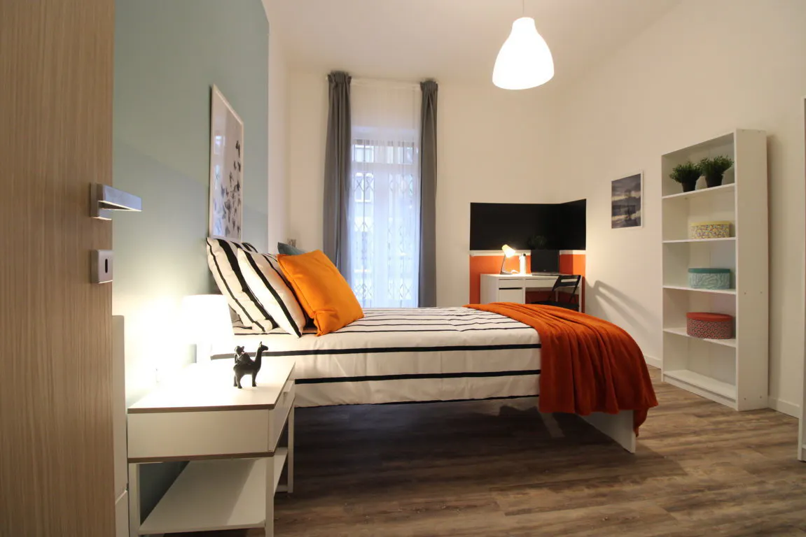 Zona Mompiano, posizione strategica e ambita, si affitta una bellissima singola con balcone rimodernata appositamente per offrire comfort e comodità ai nostri studenti. La è dotata di letto singolo, armadio 3 ante, scrivania con portaoggetti, comodino, tendaggi, specchio, scarpiera, libreria. I colori delle pareti favoriscono il buon umore e aiutano nello studio...